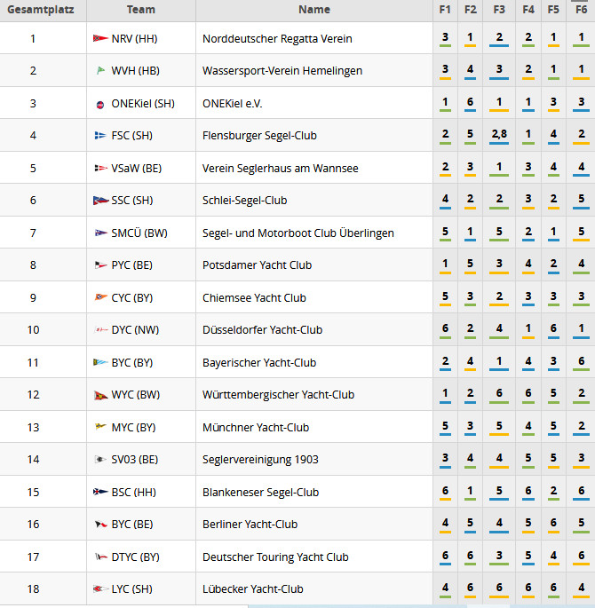 Das Leaderboard sowie alle weiteren Informationen finden sich auf der Webseite der Segel-Bundesliga.