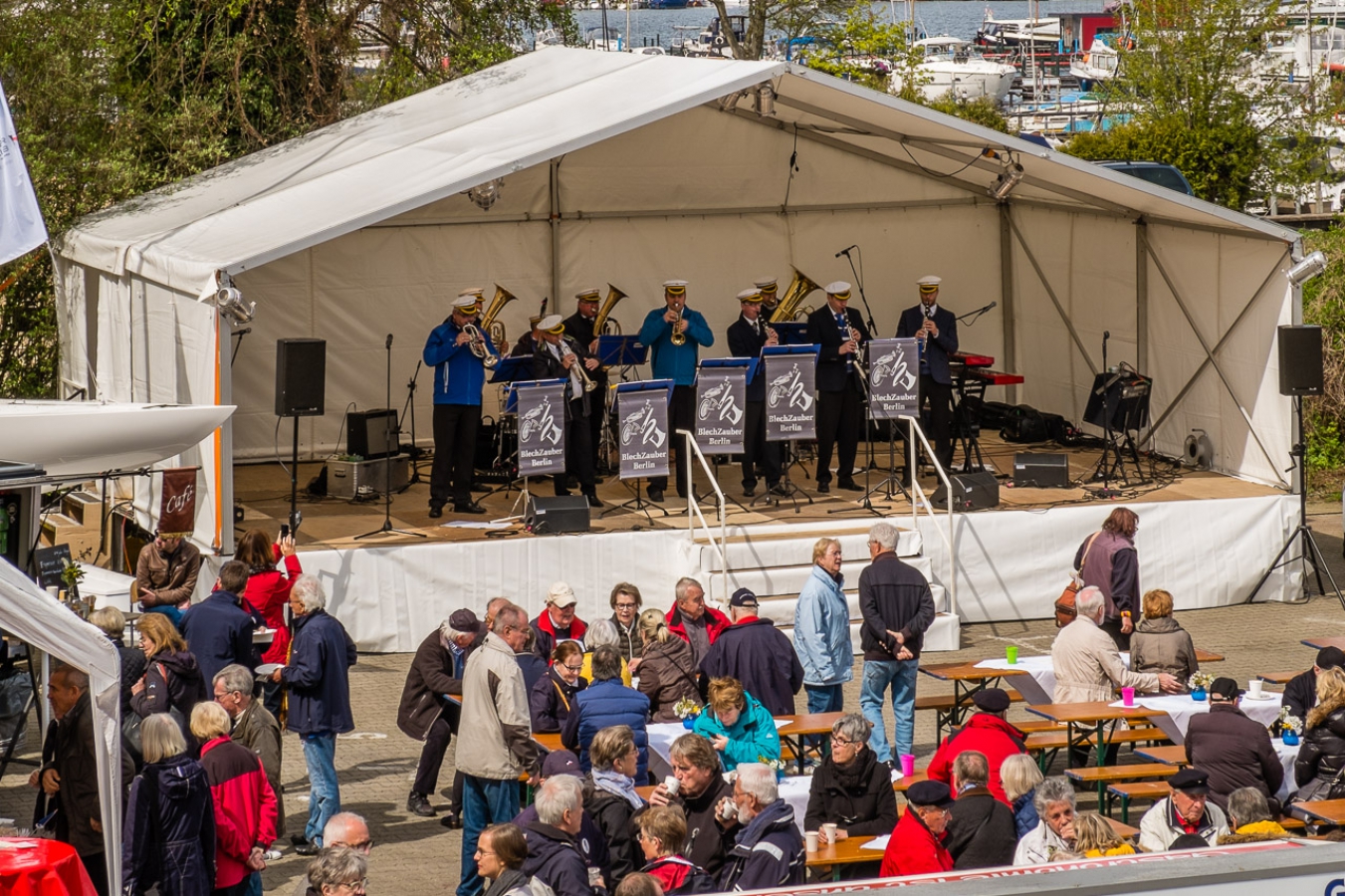 Sehr viele Segler der heimischen Reviere wie auch Gäste von weiter her folgten der Einladung - auf dem Landweg sowie über Havel und Wannsee - und feierten den Saisonbeginn. Es begann zunächst zünftig mit Blasmusik des Stabsmusikcorps der Bundeswehr, dann begrüßten die Vorsitzenden des Potsdamer Yacht Clubs, des Berliner Segler-Verbands und der Bezirke der Reviere Unterhavel und Wannsee sowie der Stadtrat für Soziales und Stadtentwicklung von Steglitz-Zehlendorf die Gäste, und schließlich wurde die Eröffnungszeremonie stilvoll mit der Flaggenparade beendet. Im Hafen führten die Sportfreunde Berliner Modellsegler Spandau ihre Modellboote M-Marblehead vor und segelten Regatten gegeneinander. Die Hüpfburg war Treffpunkt für Chaosspiele aller kleinen und großen Kinder.