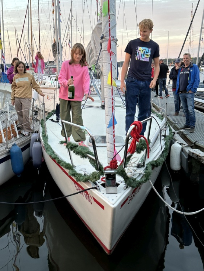 Das Hafenfest 2023 war ein voller Erfolg. Unsere Gastronomie, die einen solchen Event das erste Mal ganz allein bespielte, trug dazu bei; Freibier bzw. Frei-Fassbrause, Kletterwand und Hüpfburg, die musikalische Untermalung der Saxophonistin und später die unwiderstehlichen Einladungen des DJs auf den Dancefloor und nicht zuletzt die kurzweiligen Bootstaufen - vom nagelneuen Opti bis zum frisch restaurierten 50 qm Seefahrtkreuzer aus dem Jahre 1924. „Neptun“, stilvoll verkörpert von unserem Zweiten Vorsitzenden, Falko Ahlers, stellte Boote und Eigner charmant vor und taufte höchstpersönlich. Anschließend wurde die von Hilkka Kirstaedter gestaltete „Lane of Fame" der Olympioniken des PYC enthüllt. Der Designerin sowie den Financiers dieses Projekts, Norbert Dreifürst und Malte Diesselhorst, sei an dieser Stelle noch einmal gedankt!