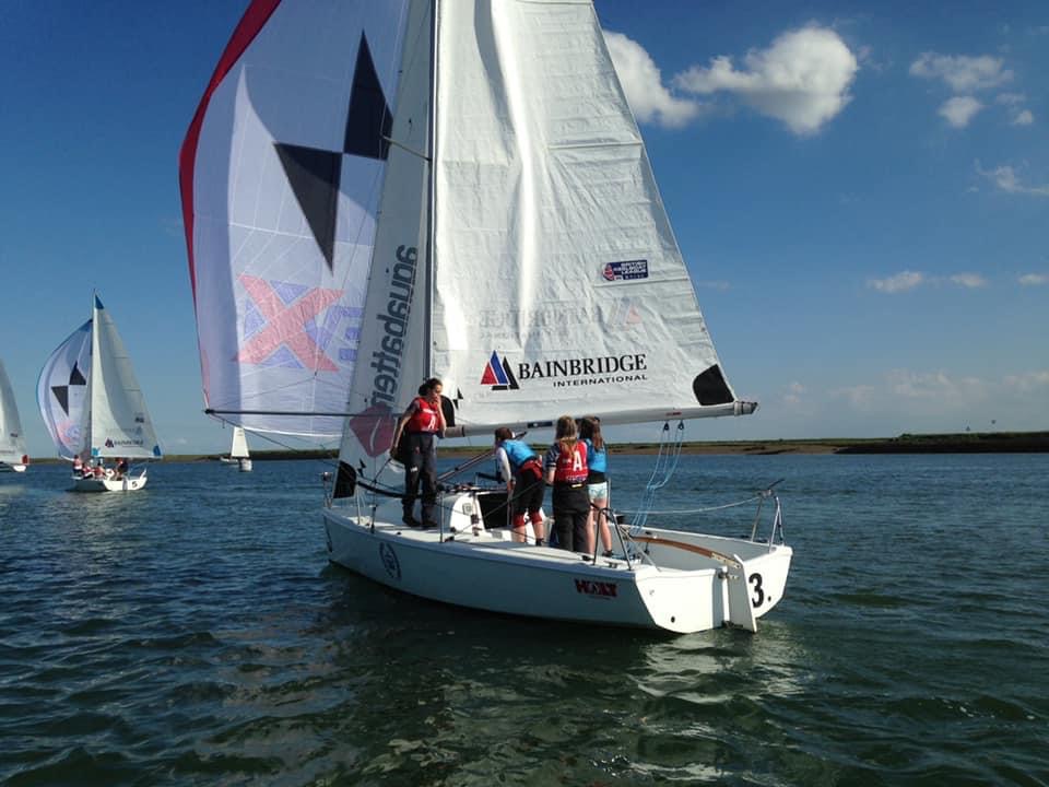 Nach dem Lockdown startete auch wieder das Segeltraining. Ich kann dort viele verschiedene Boote segeln, darunter auch 29er und Kielboote. Im Frühjahr wurde ich ausgewählt, Teil des Royal-Hospital-School-Teams zu werden, um in der British Keelboat League Anfang Juni an einer Regatta teilzunehmen. Wir sind ein Team aus vier Leuten und konnten an zwei Nachmittagen auf dem Boot trainieren. Die anderen Teams bestanden meistens aus fünf erwachsenen Personen, die in der Regel schon lange Zeit zusammen trainieren. Daher waren unsere Erwartungen auch nicht besonders hoch. Insgesamt wurden 21 Rennen gesegelt, die jeweils nur ungefähr 12 Minuten dauerten. Wir hatten gutes Wetter und wenig Wind, was zu viel Wartezeit führte, die von den netten Organisatoren mit vielen Snacks gut überbrückt wurde. Insgesamt wurden wir in der Gesamtwertung leider Letzte. Trotzdem war unsere Stimmung gut, weil wir uns über die Tage gut entwickelt/verbessert haben.