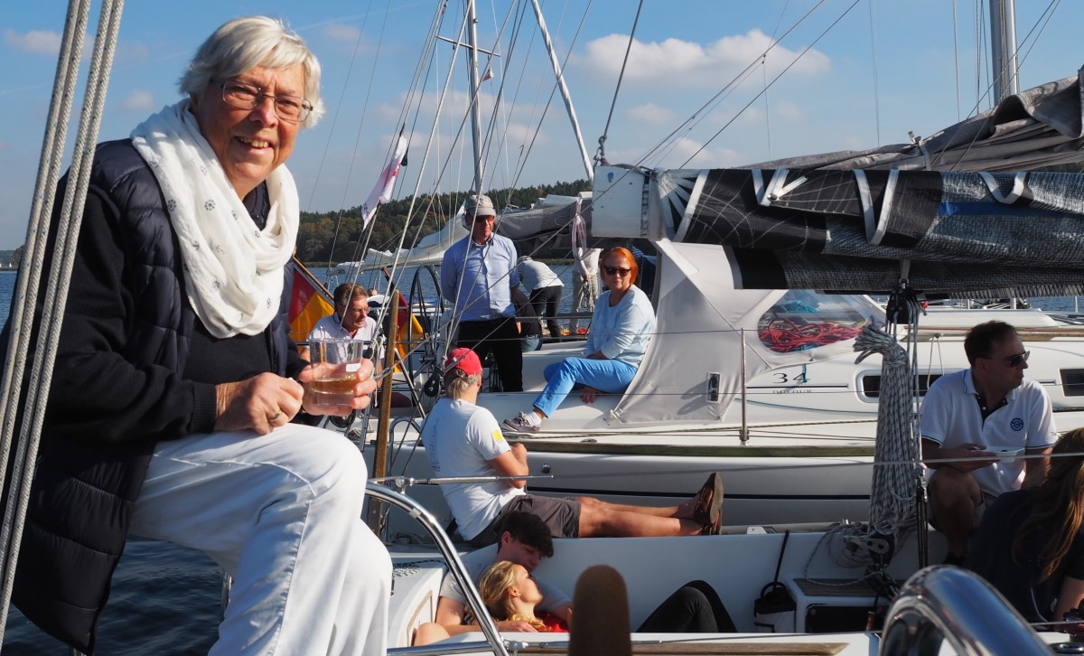 Vor einem Jahr sah es zum Absegeln noch ganz anders aus, aber am 15. Oktober konnte man kaum glauben, dass die Segelsaison 2017 nun vorüber sein soll. Blauer Himmel, strahlende Sonne, laue Winde und sommerliche Temperaturen herrschten, als der PYC zur Geschwader-Fahrt aufbrach. Begonnen hatte es wie immer mit der Ansprache des Vorsitzenden, Hartmut Waldow, zu den Ereignissen der zurückliegenden Saison und aktuellen Themen sowie mit der vom Hafenkapitän Jörg Henschke geleiteten Flaggenzeremonie, die von einem jungen Team diesmal besonders stilvoll durchgeführt wurde. Bis zur Großen Breite wurde das Schiff mit dem Commodore-Stander mindestens dreimal zugunsten der Jugendabteilung übersegelt, und am Ende lag ein gutes Dutzend Schiffe im Päckchen in der Millionärsbucht. Dort ließen es sich die Mitglieder bei erlesenen Speisen und Getränken sowie geselligem Miteinander gut gehen. Der Vorsitzende nahm sogar ein Bad, andere machten es ihm nach. Erst in der Abenddämmerung waren alle wieder im Hafen.