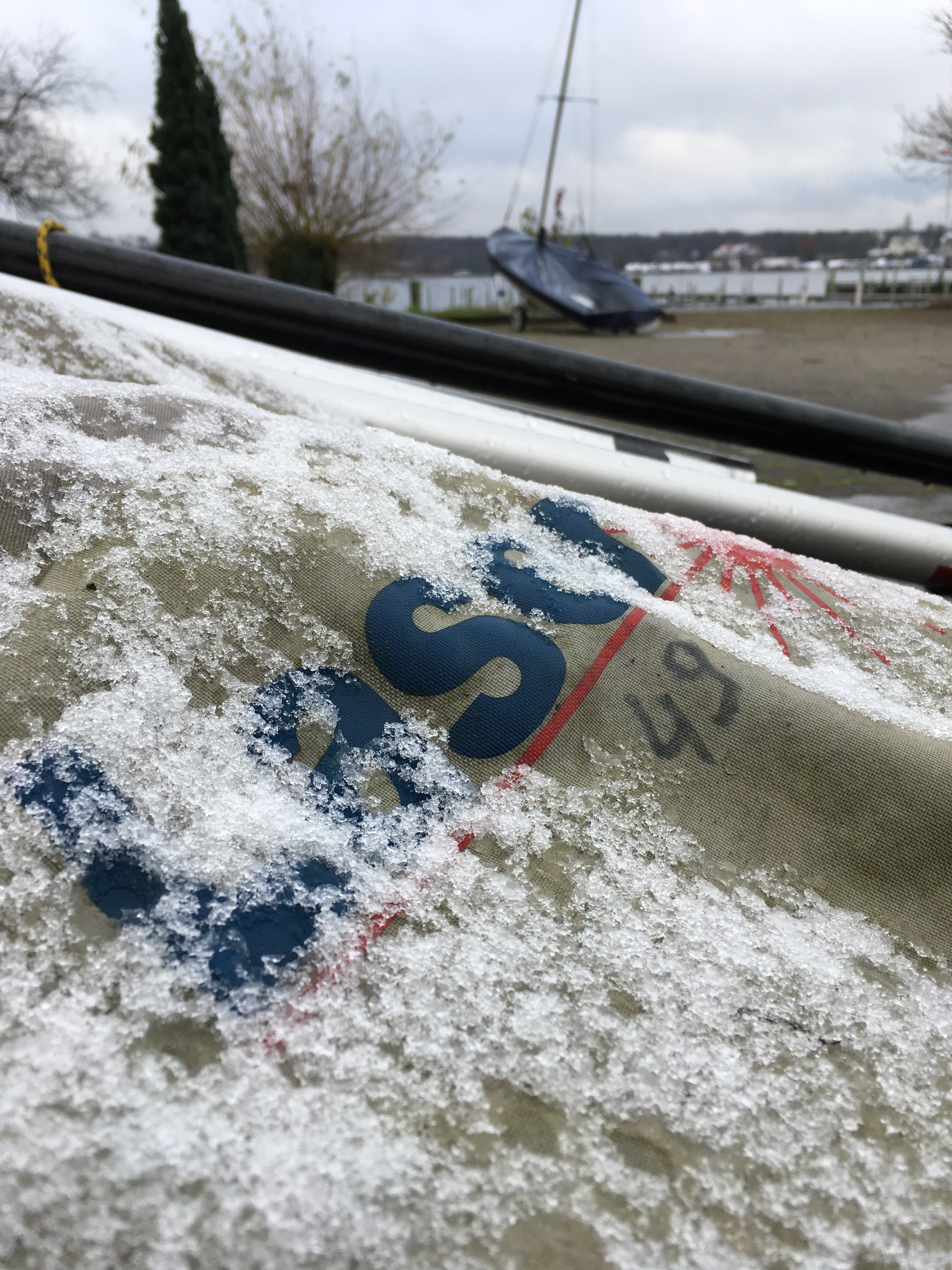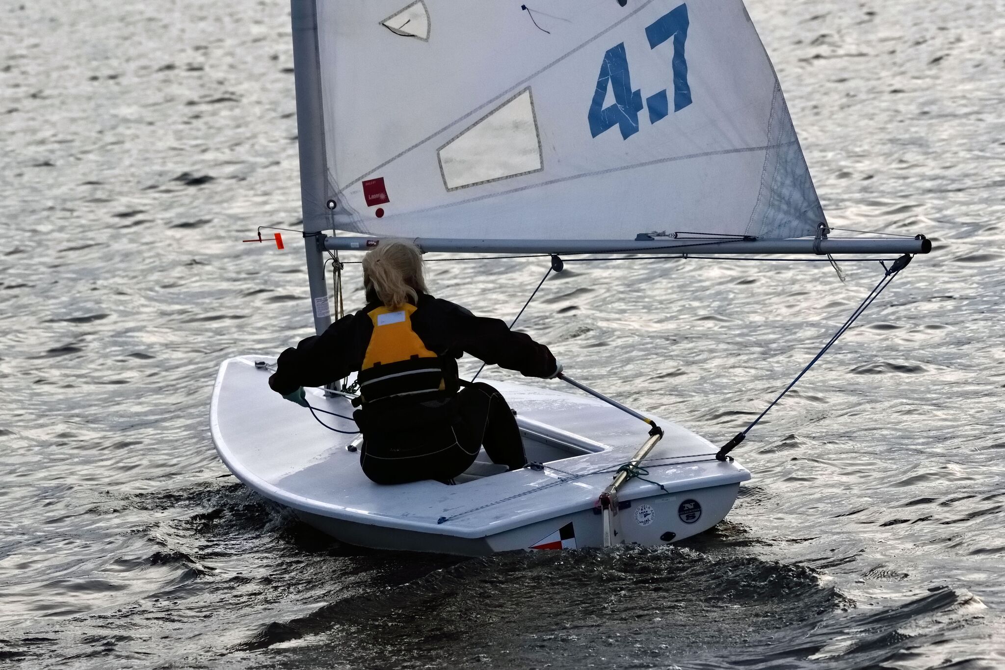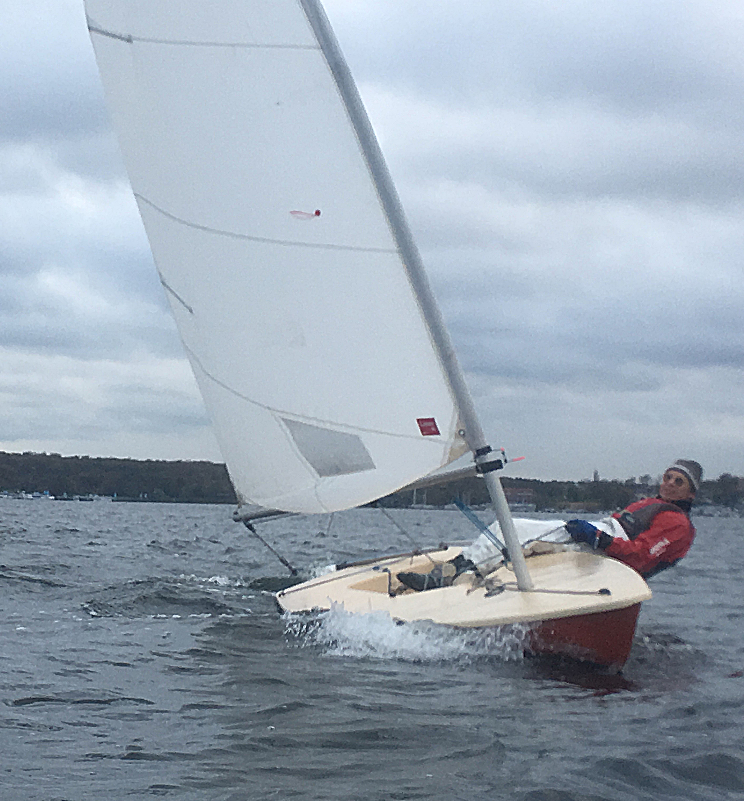 Für Irritation sorgte, dass manche Segelanfänger der Annahme waren, sich auf diese Olympiajollen wagen zu können. Der sich sofort einstellende Frust ob der Unbeherrschbarkeit des kippeligen Geräts, folgte die Erkenntnis: Der Laser ist nicht für Segelnovizen geeignet. Trotzdem blieb das „Leistungsspektrum“ der Segler*innen durchaus heterogen. Dem Spaß tat das aber überhaupt keinen Abbruch und die Gruppe wuchs bei schönem Sommerwetter auf bis zu 12 Boote an. Wenn abends der Wind weg war, wurde auch schon mal am Wasser gegrillt und Dönekes zum Besten gegeben. Mit den kürzer werdenden Tagen verschob sich der Segeltermin peu à peu nach vorne, und nachdem die Dickschiffe aufgeslippt waren, wurde am Samstagnachmittag gesegelt. Zu einer zünftigen Segelgruppe gehört natürlich auch eine Weihnachtsfeier. Am 16. Dezember wurde erst gesegelt und dann unter dem Motto „Weihnachtsschmaus im Leichenhaus“ die seglerische Weihnachtszeit eingeläutet. Erstaunlich, wie gemütlich Heizlüfter und ausreichend Kerzen unser kleines Belvedere auf der Dependance machen! Aber der milde Winter lockte weiterhin auf's Wasser und noch zu Silvester segelten 6 unerschrockene PYC Master UHUs mit der Wannseefähre um die Wette. Jetzt, da es doch etwas friert, haben wir eine kurze Segelpause eingelegt, um die Boote wieder auf Vordermann zu bringen. An dieser Stelle sei allen aktiven UHU Helfern für die viele Arbeit bei der Reparatur und Pflege der Boote gedankt. Nicht zu vergessen den Spendern von Ausrüstung und Geld, die dafür sorgten, dass wir so eine schöne Lasersaison hatten. Ein großer Dank gilt natürlich auch unseren Trainern Thomas und Kevin, die sich fürsorglich um das Wohlbefinden der UHUs und deren Boote kümmern.