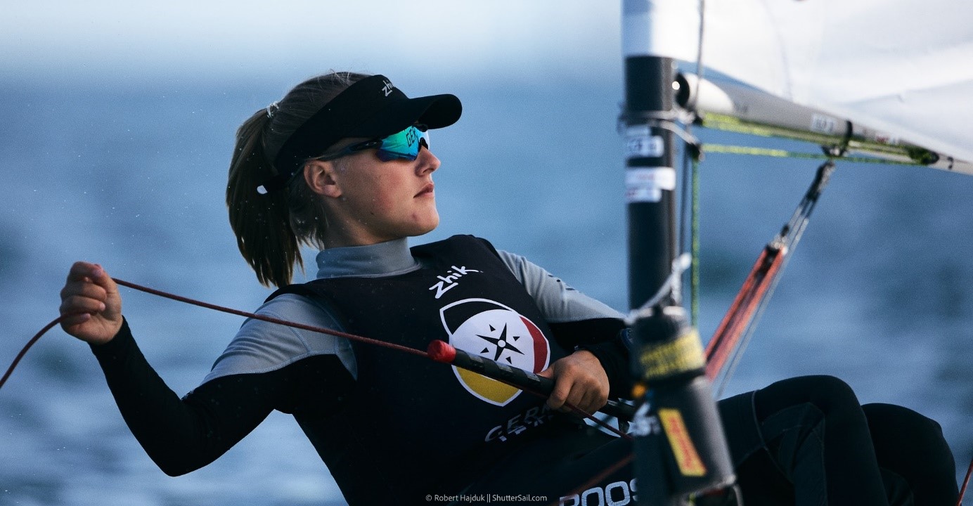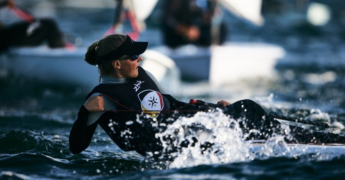 Bei der Kieler Woche zwei Wochen später hatte ich die Chance, mein Triple des Platzes 21. zu vervollständigen. Nach 3 Tagen Training bei sehr leichtem Wind starteten wir mit Mittelwind und schönem Wetter in den ersten Wettfahrttag. Insgesamt waren 53 Mädels am Start, von denen viele aus dem Seniorenbereich kamen, weshalb das Niveau sehr hoch war. Ich brauchte das erste Rennen, um etwas in den Racemodus zu kommen, jedoch lief es danach immer besser. Mit zwei 17. Plätzen und einem eher weniger guten 34. Platz lag ich nach dem ersten Tag auf Platz 20. Alle fingen schon an zu scherzen, dass ich zum dritten Mal in Folge den 21. Platz belegen könnte. Am zweiten Wettfahrttag starteten wir zuerst bei recht guten Bedingungen, jedoch flaute der Wind schnell ab und wir schafften nur zwei der drei geplanten Rennen. Mit den Platzierungen 24 und 13 konnte ich mich jedoch mehr und mehr von Platz 21 nach vorne bewegen und lag auf Platz 18 der Gesamtwertung. Am dritten Tag starteten wir schon etwas früher, um das versäumte Rennen des Vortages nachzuholen. Bei anfangs sehr leichten Winden konnte ich zwei top ten Ergebnisse fahren, mit denen ich sehr zufrieden war, denn ich hatte seit langer Zeit das erste Mal zwei sehr gute Starts. Nach einem „versäumten“ Start im dritten Rennen kam ich dort leider nur auf Platz 32 an. Im vierten Rennen des Tages segelte ich einen 20. Platz und konnte mich insgesamt somit auf Platz 17 verbessern. Am letzten Tag war noch einmal starker ablandiger Westwind, was normalerweise nie meine große Stärke war, jedoch konnte ich beweisen, dass ich auch bei diesem Wind gut segeln kann. Mit einem 21. im ersten Rennen startete ich zuversichtlich ins zweite, wo ich an der Tonne eins als sechste ankam. Da die älteren Mädels alle sehr schnell sind und eine sehr gute Technik sowohl auf dem Vorwind als auch auf der Kreuz haben, verlor ich noch 4 Boote, aber war mit einem 11. Platz und dem drittbesten Rennen der Regatta mehr als zufrieden. Insgesamt konnte ich mich am letzten Tag noch auf Platz 16 vorarbeiten, was mich zuversichtlich auf das kommende Seniorenevent schauen lässt. Am 02. Oktober startet für mich mein erstes richtiges Seniorenevent. Die Senioren EM in Varna, Bulgarien, bei hoffentlich sehr gutem Wetter und schönen Segelbedingungen auf dem Schwarzen Meer.“
