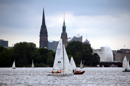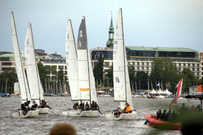 Auf der Alster wurden drei Bahnen verlegt. Jedes Team startete sechs Flights à zwei Rennen – Freitag bis Sonntag.