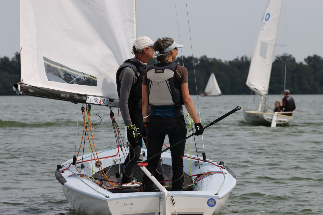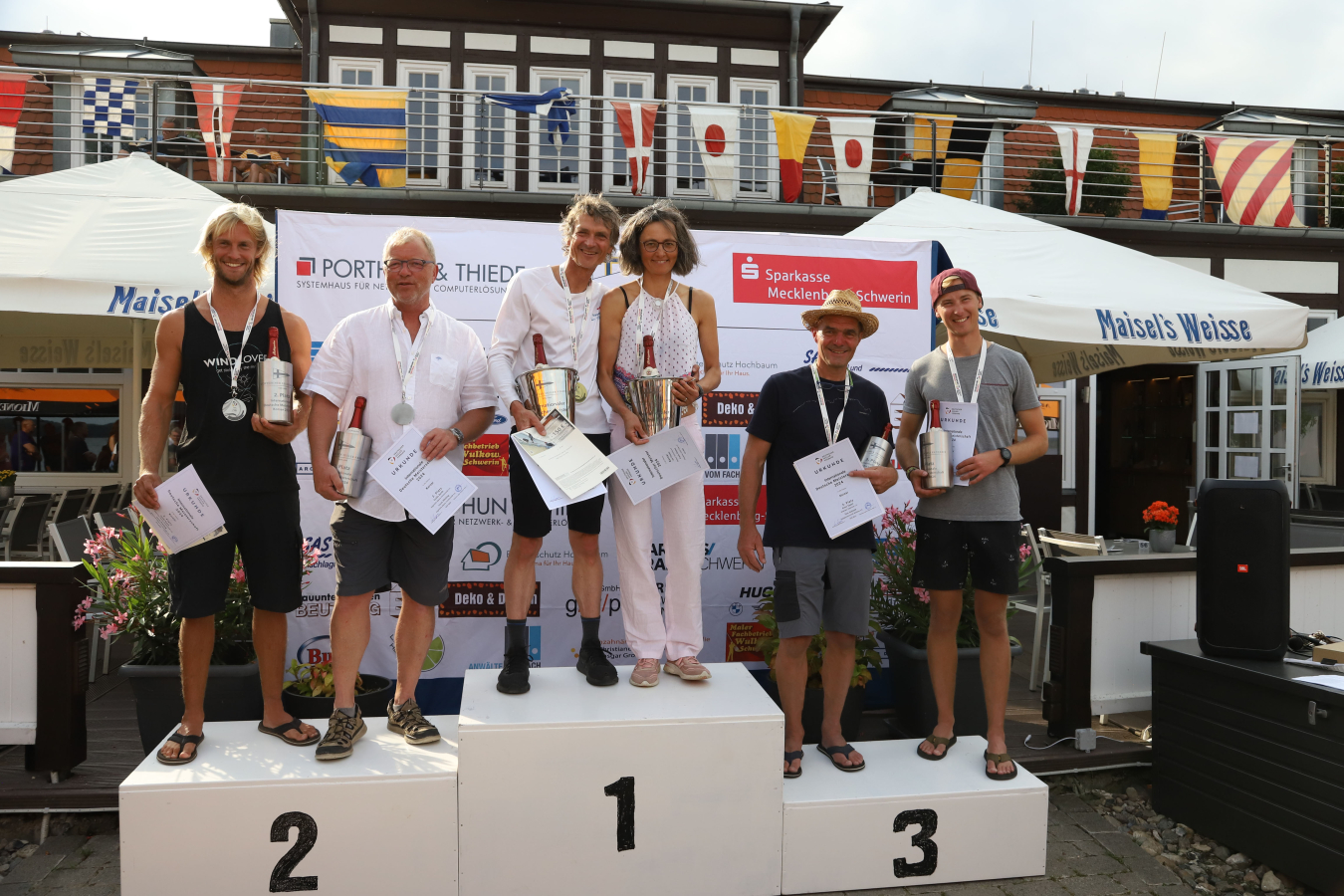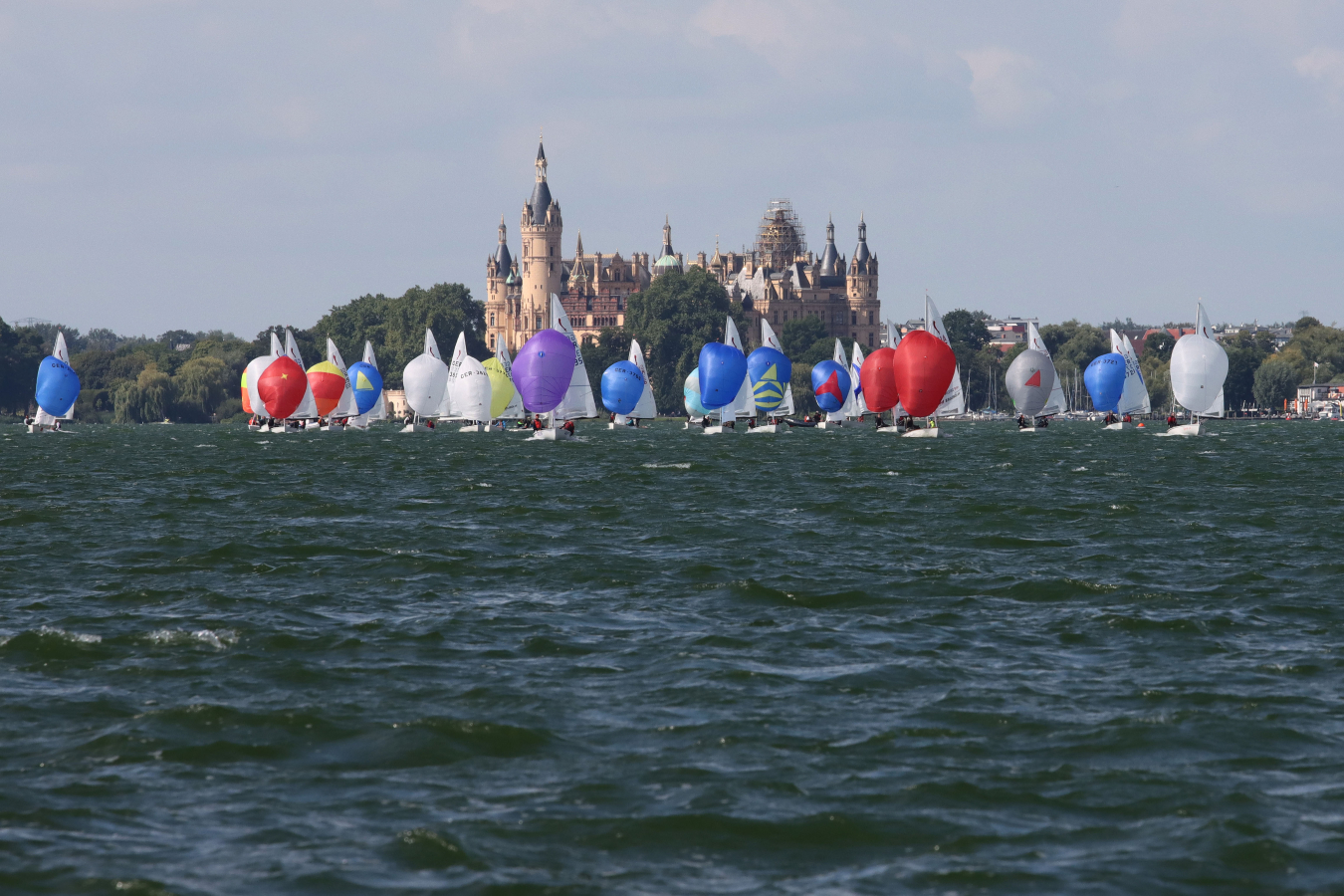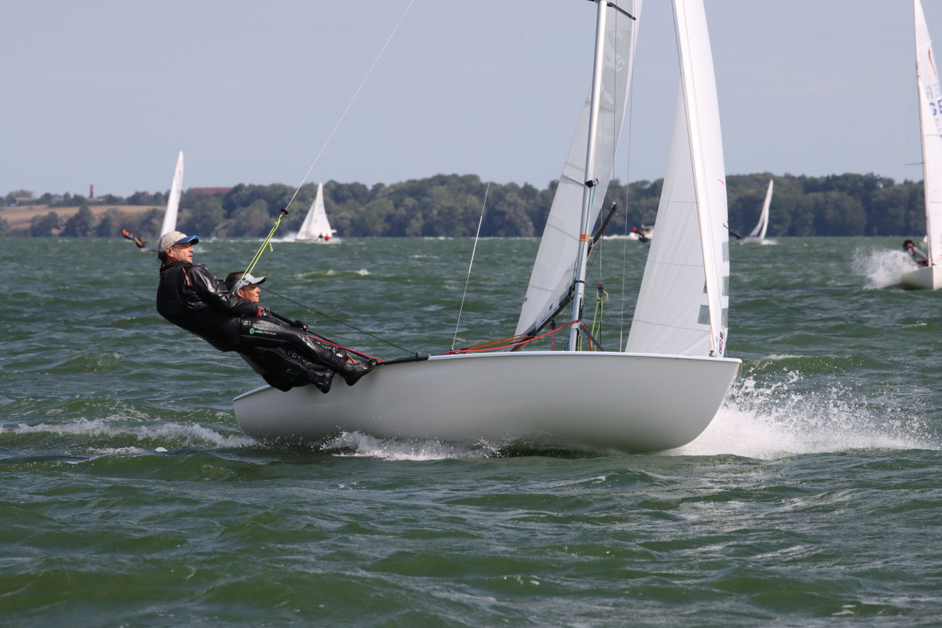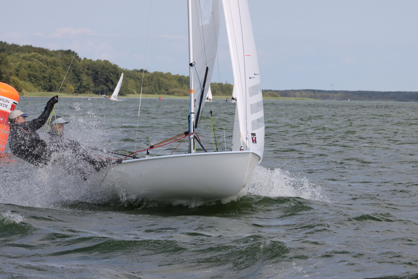 Der Schweriner See bot unterschiedlichste Segelbedingungen. Das kam uns sehr entgegen, denn wir sind gute „Allrounder“. Mit unsern 115 kg sind wir für viel Wind viel zu leicht, schafften es aber trotzdem noch einigermaßen vorne mit anzukommen. Bei Mittel- und Leichtwind, konnten wir dann unsere Stärken ausspielen.