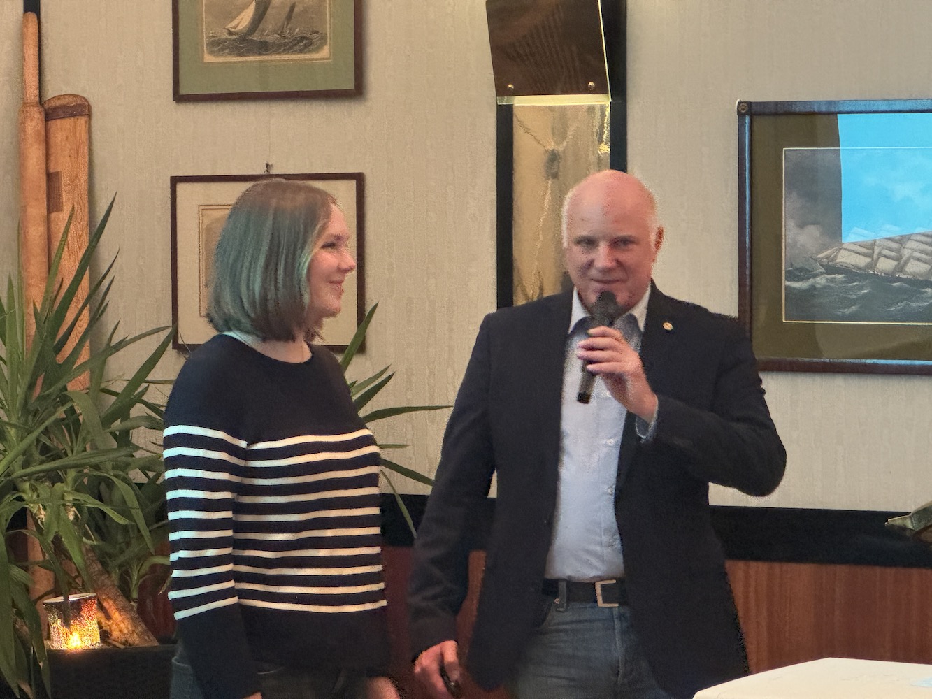 Irgendwann zwischendurch wurde der Hauptgang verputzt und während man Nachspeise genoss, gab es als Sahnehäubchen die Ehrungen des Ressorts Sport noch dazu. Gerne hätte Sportobmann Carsten Hanisch ILCA-6-Seglerin Gesa Papenthin nach vorne gerufen, doch der Bahnstreik machte da einen Strich durch die Rechnung. Kiel-Berlin wurde ein Ding der Unmöglichkeit; und so stellte Carsten Hanisch die seglerischen Erfolge (u.a. 11. Platz Europacup Warnemünde, 8. Platz IDM bzw. 3. der U23-Wertung) und auch den ehrfurchteinflößenden Trainings- und Regattaplan der inzwischen 21-Jährigen vor, die sich als Mitglied des German Sailing Team im Seniorinnenbereich mit den Olympiasiegerinnen und Weltmeisterinnen messen muss. Eine Herausforderung, die Gesa als Chance wahrnimmt.