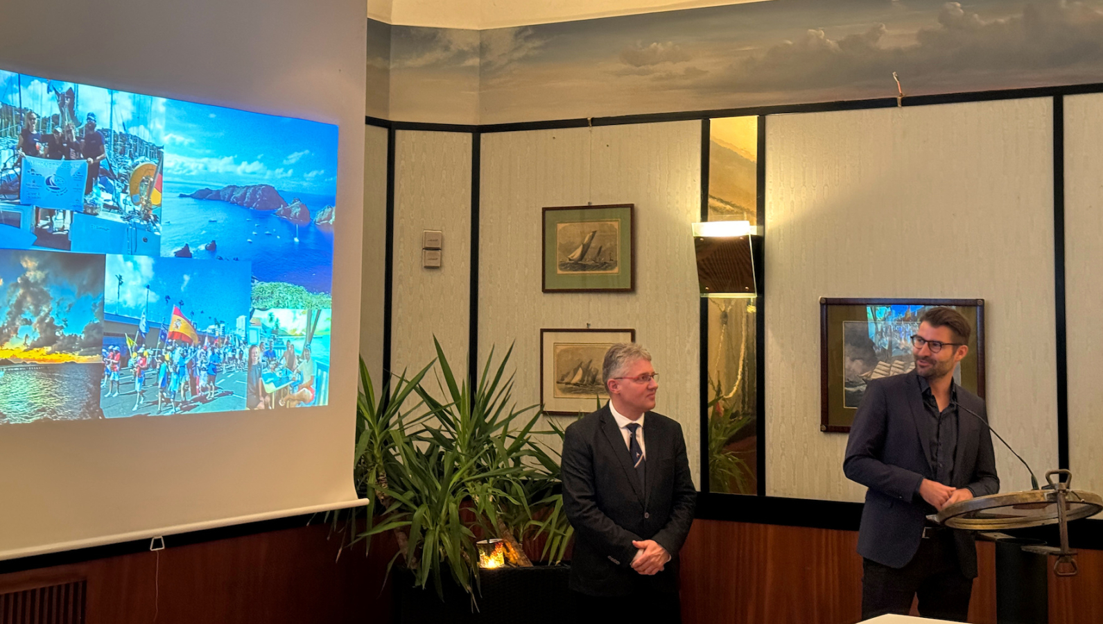 Nach der Hauptspeise schlug Fahrtenseglerobmann Matthias Haller den Bogen vom Großsegler zu kleineren Schiffen, wie z.B. der TP 52 Rennyacht Red Bandit, auf der mittlerweile sowohl Frederick Eichhorst als auch Sophie von Waldow mitsegeln. Beide lernten das Segeln im Opti bei Thomas Läufer, beiden steht mit dem nahen Ende ihrer Studienzeit auch ein weiterer Abschnitt in ihrer seglerischen Karriere bevor. Als eine von vier deutschen Seglerinnen hat es Sophie von Waldow aber zuvor geschafft, beim Magenta Project als Mentee unterzukommen, um ihre Kenntnisse und Connections im Bereich des Hochseesegelns zu vertiefen bzw. auszuweiten.