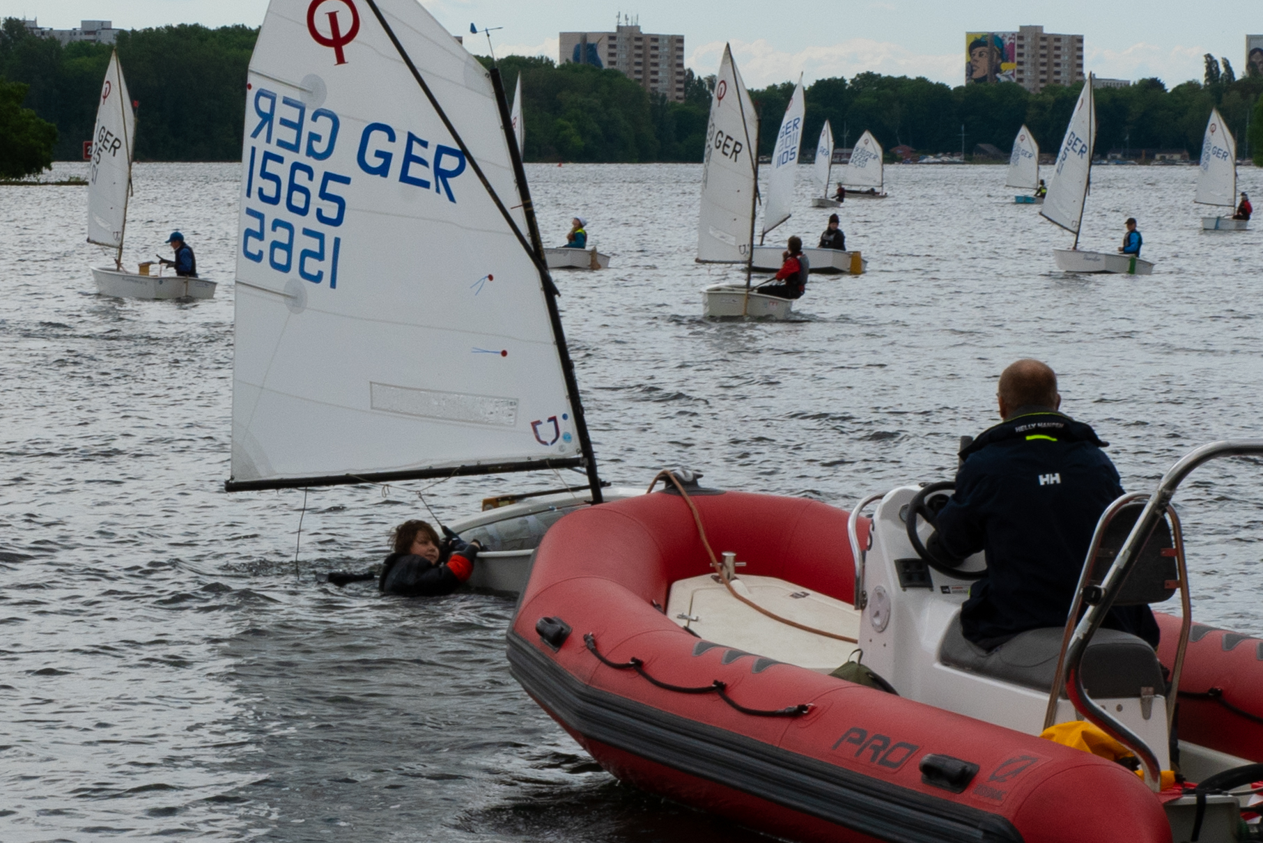 Unsere Big B’s hatten Spaß: „Cooler Wind“, meinte Raphael, „und nicht so überfüllt - gefühlt die Hälfte der Teilnehmer ist gekentert oder vollgelaufen.“ Unsere Minis betrachteten, auch vergnüglich, das Rennen ganz entspannt vom Mobo aus. Diese Entscheidung der Trainer war für Samstag die richtige. Clara wollte zwar unbedingt segeln. Nachträglich ihr Kommentar: „War doch gut so, dass wir die Optis an Land gelassen hatten.“