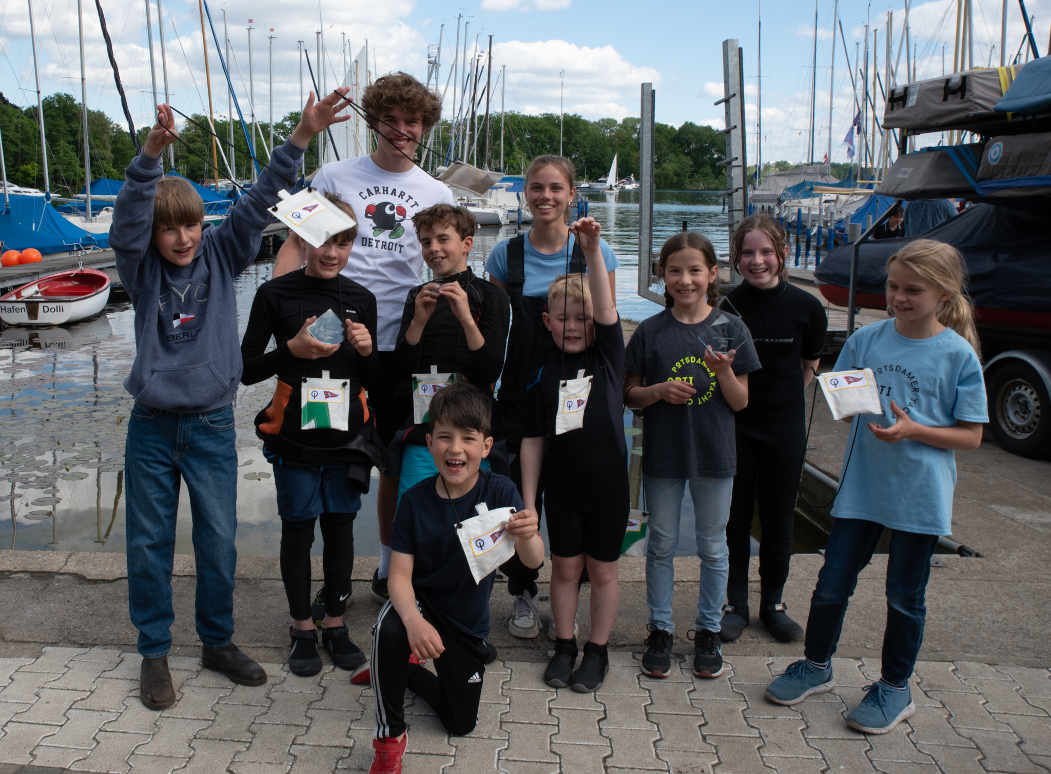 Pokale gab es für die ersten Zehn. Lale erkämpfte sich einen auf Platz 4, Raphael Platz 6 und Emil leider knapp verpasst: Platz 12. Durchaus auch beachtenswert: In Einzelwettfahrten belegten Lale und Raphael jeweils einen ersten Platz. Unsere Segler sind konkurrenzfähig!