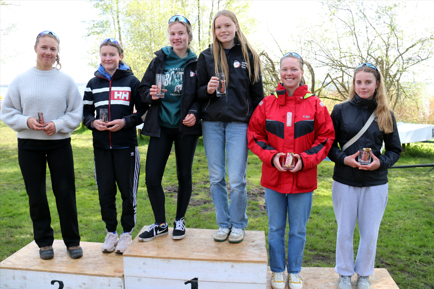 Am ersten Maiwochenende trafen sich vierundzwanzig 29er-Teams zum Wittensee-Fight beim Wassersport-Club am Wittensee im Zentrum des Naturparks Hüttener Berge, der zwischen Schleswig, Rendsburg und Eckernförde liegt. Der nördliche Teil Schleswig-Holsteins befand sich an dem Wochenende nördlich der „markanten Luftmassengrenze“ auf der Wetterkarte und wartete am Samstag mit Temperaturen von gerade einmal 7 Grad auf. Kalt war es, aber dafür gab es Wind! Und den nutzten Leonie Böcker und Paula Lepa! Bis auf eine einzige Ausnahme machten die vier Mädelsteams, die am Ende die obersten vier Plätze belegten, sämtliche Tagessiege unter sich aus. Ganz besonders eng ging es an der Leistungsspitze unter den drei Topteams zu: Zwischen den Gewinnerinnen und den Zweit- und Drittplatzierten gab es lediglich zwei Punkte Unterschied. Der Abstand zu Platz 4 betrug dann bereits 12 Punkte! Leonie und Paula landeten punktgleich mit den Zweitplatzierten Eleonora Röpke und Emma Kohlhoff aus dem Kieler Yacht-Club auf dem 3. Platz. Ein zusätzlicher Tagessieg der Kielerinnen machte den Unterschied. Was für ein Krimi – und eine großartige Leistung! Herzlichen Glückwunsch!