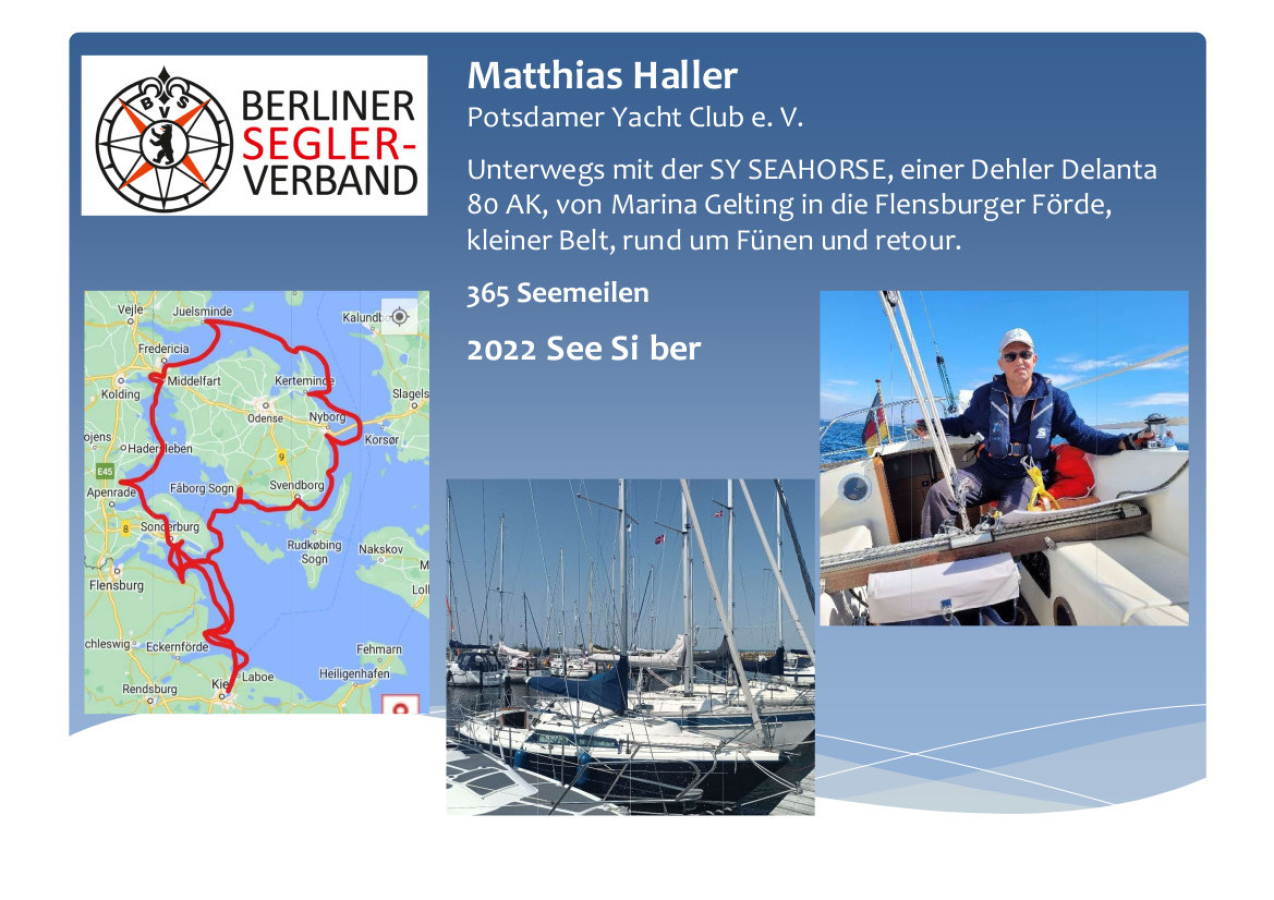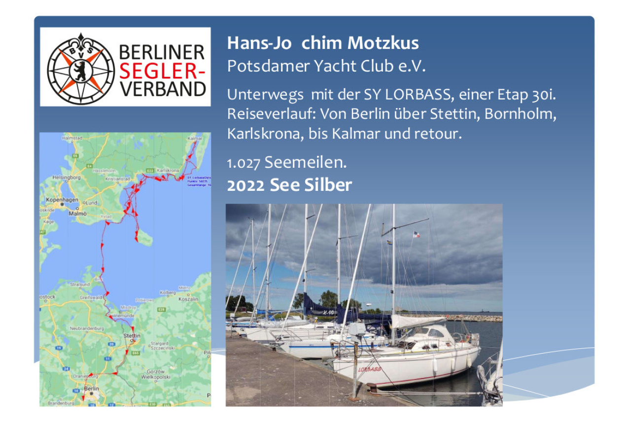 Hinsichtlich der Beteiligungen pro Club lag der Potsdamer Yacht Club damit im oberen Drittel der 39 beteiligten Clubs. Da sei noch mehr drin, meinte unser Fahrtenseglerobmann!