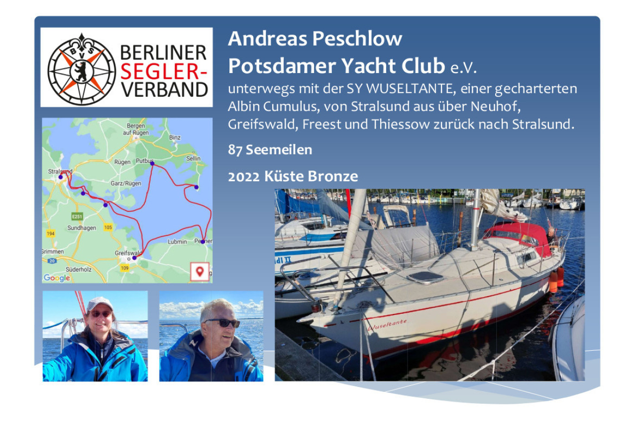 Für den PYC zahlte sich die beharrliche Überzeugungsarbeit letztlich aus, die unser Cheffahrtensegler im Vorfeld leisten musste, um seine Clubkameraden zur Anfertigung der Törnberichte zu bewegen: Fünf Medaillen bei fünf eingereichten Beiträgen sind doch ein guter Schnitt!