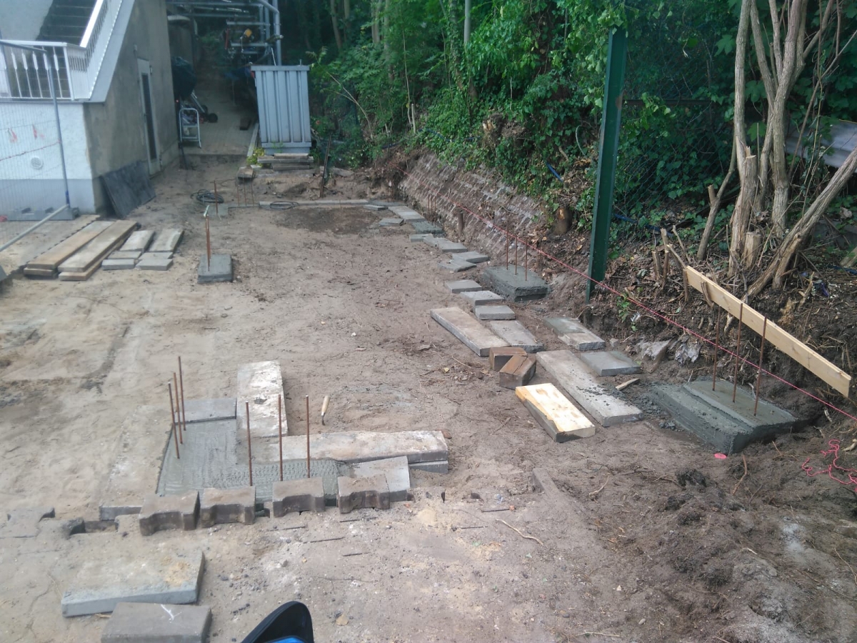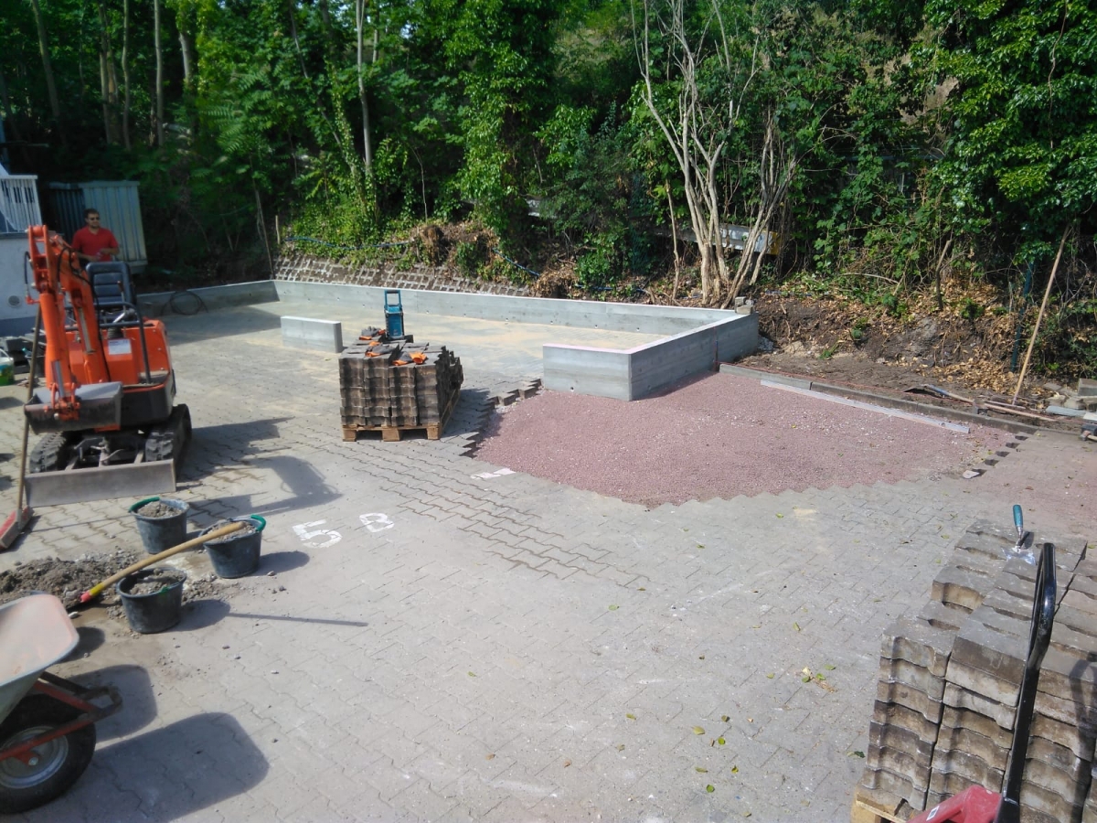 - Herstellung eines wasserdurchlässigen Bodens in der Garage (Schüttung von recyceltem Beton und Verdichtung dieser Schicht),