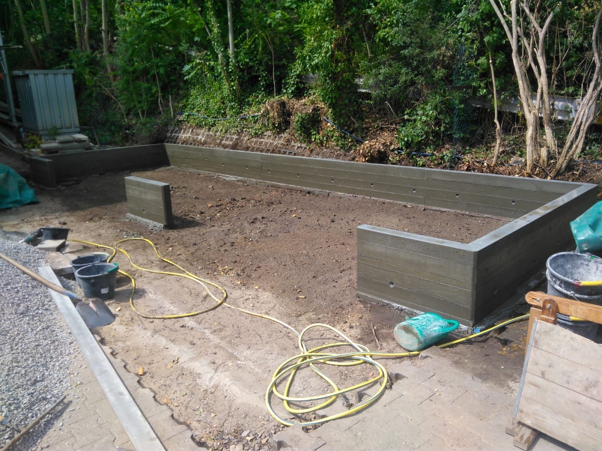 Seit dem Einmessen der linksseitigen Grundstücksgrenze ist dank des tatkräftigen Engagements unseres Clubmitglieds Matthias Haller - unter Mithilfe von Tobias Haller, Hans-Joachim Motzkus, Axel Bilowsky, René Schlieff, Sven Banse, Thomas Rosin, Dr. Thomas Storch und Benedikt Heüveldop - viel passiert: