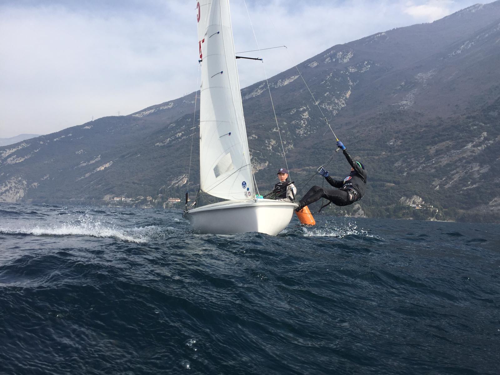 Wir sind in der ersten Märzwoche stattdessen zum Gardasee gefahren. Zusammen mit den 420ern aus Bayern war das Ziel, eine Woche Starkwind- Training zu absolvieren und nach der für Vincent Bahr und mich viel zu langen Winterpause endlich wieder ein Boot unter uns zu spüren. Das Training gab uns die Möglichkeit, sich während des Segelns wieder gut aufeinander einzustimmen und zu merken, als Team noch super zu funktionieren.