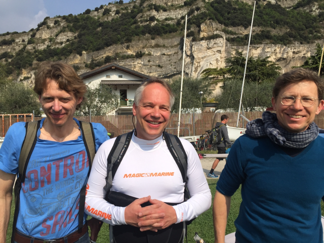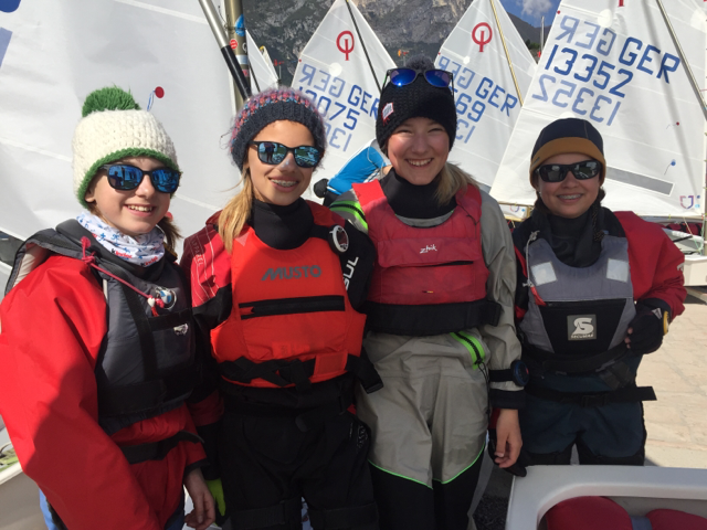 Traditionell haben sich die Optis direkt nach Beginn der Osterferien nach Torbole an den Gardasee aufgemacht. 14 B und 16 A Segler logierten diesmal im Hotel Angelini an der Ortsgrenze zu Arco mit fast direktem Zugang zum Strand.Für die Opti B standen 8 intensive Trainingstage im Plan.Thomas hat alle jungen Segler, viele davon zum ersten Mal am Gardasee, an die teilweise kernigen Bedingungen auf dem See und die verlässliche Ora gewöhnt. Neben dem Training standen auch der obligatorische Ausflug in die Höhlen oberhalb von Torbole und jede Menge Ausflüge zum Eisessen sowie zum nächstgelegenen Discounter auf dem Programm, um die Kalorienzufuhr zu verstetigen. Für die Opti A standen zunächst vier Trainingstage auf dem Zettel, bevor Kevin die Seglerinnen und Segler zur größten Optimistenregatta der Welt mit rund 1000 (!) Teilnehmern begleitete. In 8 Qualifikationswettfahrten wurden die Finalgruppen ausgesegelt. In die Goldgruppe (150 Teilnehmer) haben es in diesem Jahr Merlin Friedrich und Niklas Kühling geschafft und sich wacker geschlagen. Am Ende waren alle geschafft von vier harten Regattatagen, die mit Siegerehrung und Tombola ihr Ende fand. Ergebnisse und Details finden sich hier. Für alle gab es aber auch eine kleine süße Osterüberraschung in den Booten und für die Trainer selbstgemachte T Shirts mit typischen "Ansagen". (vielen Dank, Maria!!). In diesem Jahr war die Elternbeteiligung insgesamt besonders hoch und stellte die örtliche Gastronomie ab und zu vor einige logistische Herausforderungen bei den abendlichen Tischreservierungen. Es waren mit 30 Personen genau so viele Eltern wie Segler unterwegs und einige von ihnen haben sich schwer ins Zeug gelegt. Wandern, Radfahren und Joggen gehören zu den Standards. Dieses Jahr wurden u.a. Schiffe in Malcesine gechartert und ohne Rücksicht auf das Material auch mal eine Wende unter Genacker versucht. Vom Ausgang dieses Versuches können die Beteiligten am kommenden Mittwoch gerne berichten. Eine Herausforderung der besonderen Art gab es für die neu ins Leben gerufene Laser Erwachsenen- Gruppe (interner Arbeitstitel "UHUs"). Mit insgesamt 4 Lasern und verschieden großen Besegelungen angetrieben, haben sich rund 10 von ihnen darin versucht, einen Laser auch bei viel Wind und Welle einigermaßen schnell zu bewegen. Viele Kenterungen und Widrigkeiten mit den vielen und langen Schoten und Streckern haben den Spaß nicht trüben können und am Ende gab es viele glückliche Gesichter am Strand. Wir sind froh, dass alle wieder gesund in den Hafen gekommen sind und freuen uns auf das erste gemeinsame Training am Monatg, 24.4.2017 um 17h. Bis dahin gilt es, noch ein wenig mehr Kondition aufzubauen. Vielen Dank insbesondere an Hans Glave für die tolle Organisation und den Einsatz!