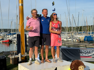 Am Ende gab es viele fröhliche Gesichter nach anstrengenden acht Wettfahrten und einer rundum gelungenen Regatta, die vermutlich zu einer der größten in Deutschland im Jahr 2024 gehört. Trotz der beengten Verhältnisse auf der Dependance, wo Wohnmobile, Wohnwagen, Zelte, Trailer, Boote und eine ganze Reihe von Elektrofahrrädern geparkt waren, tat dies der Stimmung keinen Abbruch. Teilnehmerinnen und Teilnehmer aus vielen Ländern, darunter Peter Seidenberg (86) aus den USA und Adil Khalid aus den Vereinigten Arabischen Emiraten, waren vertreten. Ebenso waren einige ex OlympiateilnehmerInnen am Start. Auch Thailand, Brasilien, Argentinien, die Ukraine, Frankreich, die Schweiz, Österreich, Dänemark und eine große Gruppe von Seglern aus den Niederlanden nahm teil.