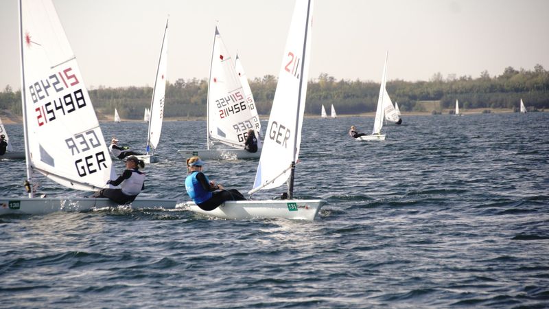 Obwohl viele der SeniorInnen im Angesicht der nahenden Europameisterschaft nicht anwesend waren, war die IDM mit 131 TeilnehmerInnen (37 Standard, 27 Radial Damen und 67 Radial Open) in diesem Jahr nach der IDM 2018 auf dem Ammersee die am zweitstärksten besetzte IDM der letzten Jahre. Der noch sehr junge Regattaclub Zwenkau (gegründet 2014) hat eine perfekte Ausrichtung einer so großen Veranstaltung in diesem schwierigen Jahr auf die Beine gestellt. Und so gab es als Belohnung sommerliche Temperaturen an allen Regattatagen. Die Windbedingungen reichten von "gerade so segelbar" am ersten Tag (nur eine Wettfahrt) bis zu "gerade noch segelbar" (ca. 20 Knoten mit einigen Böen...) am letzten Tag. Dazwischen wechselten sich mittlere mit drehenden Winden ab. Am Ende standen 9 Wettfahrten in den Ergebnislisten.