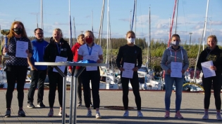 In diesen Zeiten gab es statt eines Regattaessens Foodtrucks. Die SeglerInnen waren zudem auf drei verschiedene Slipstellen verteilt; den Standards stand dabei ein extra für die Regatta hergerichteter eigenen Strand zur Verfügung. Und sogar einen Ausflugsdampfer gab es für die Zuschauer. Die Ergebnisse finden sich unter Manage2Sail.