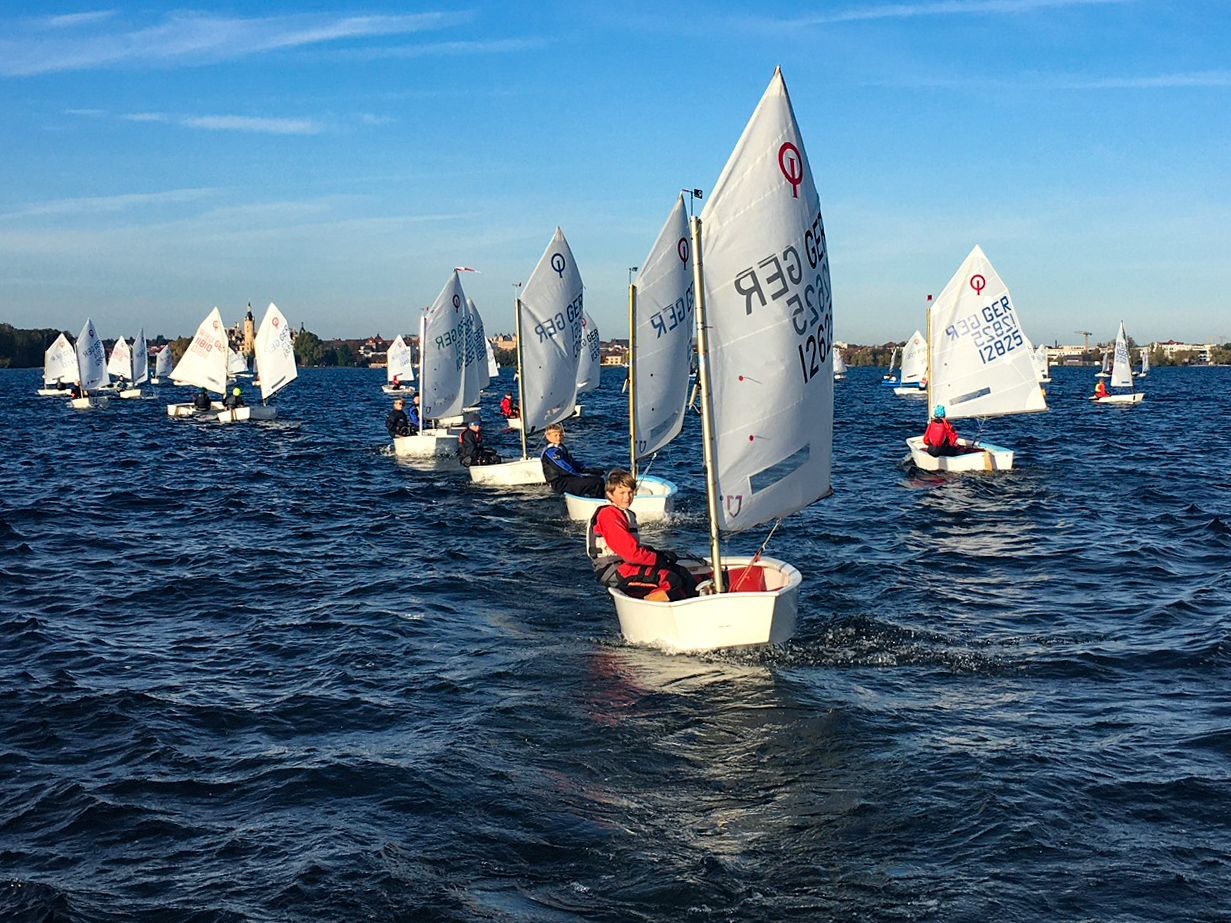 Der Herbstpokal in Schwerin zählt zu einem der größten Jugend-Segel-Events in ganz Deutschland. Über 500 Teilnehmer messen sich in den Klassen Optimist, ILCA (Laser) und Europe zeitgleich auf dem Schweriner See. Das ist eine besondere Herausforderung für die Segler: wegen der Größe des Sees, wegen der Größe des Regattafeldes und insbesondere auf Grund der Wetterbedingungen im Herbst.