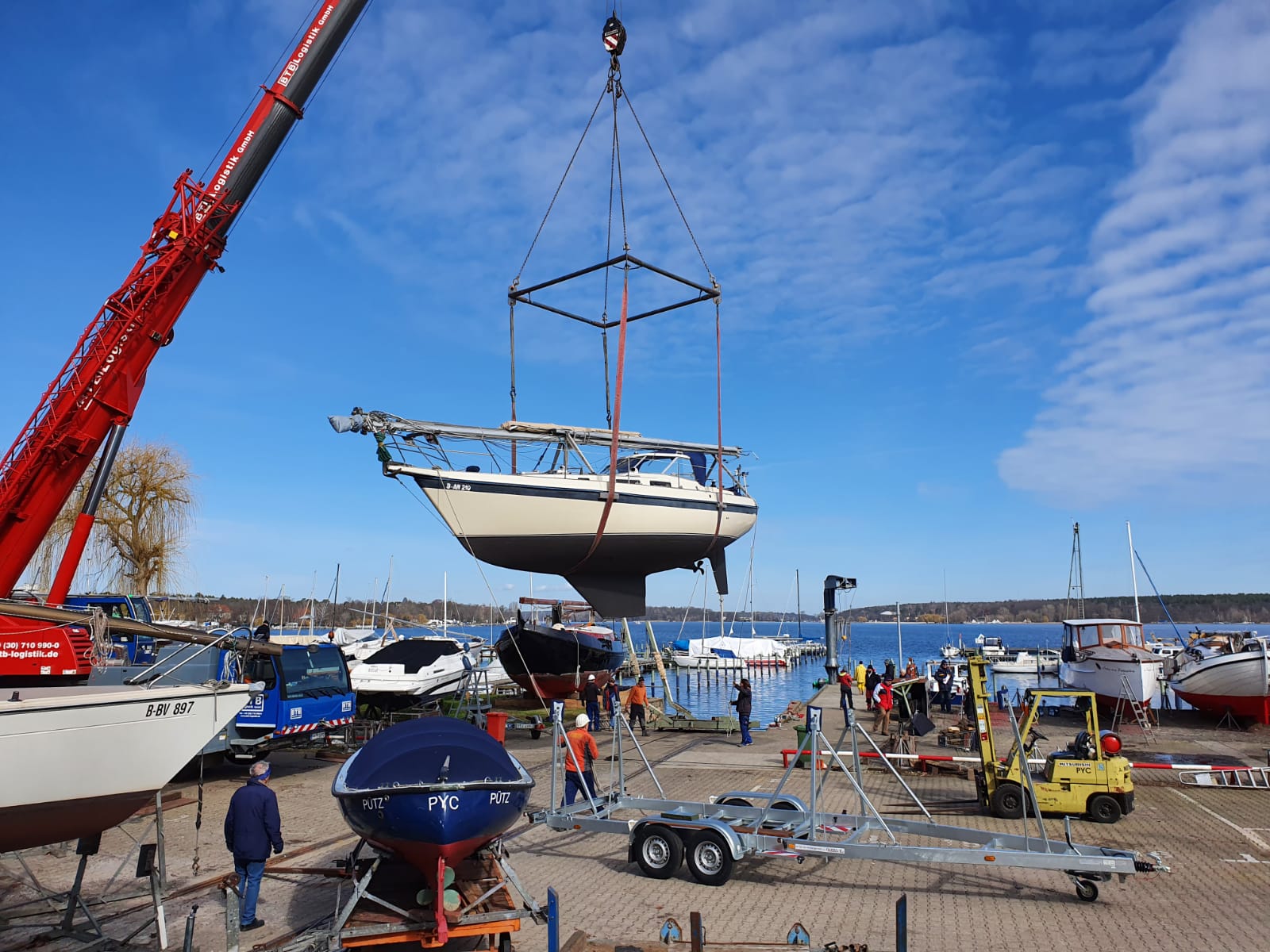 Am 22. März startete die Saison für den PYC mit dem alljährlichen Abslippen. Bereits am Freitag wurde der große Autokran aufgestellt und mahnte alle Nachzügler, nun endlich die Winterarbeiten zu beenden, die Planen abzunehmen und das Boot zum Slippen fertig zu machen.Und dann ging es am Montag gleich richtig los. Schon um 8.15 Uhr schwamm das erste Boot, zur Frühstückspause waren bereits 12 Schiffe geslippt und die Schlagzahl erhöhte sich weiter. Am Dienstag ging zeitweise alle 3 Minuten ein Boot ins Wasser und um 14.00 Uhr war der Hafen voll und der Platz wieder leer. Das ist absoluter Rekord !