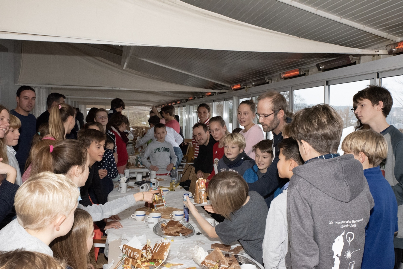 Am ersten Advent trafen sich rund 50 Jugendliche zur Weihnachtsfeier der PYC-Jugend auf der Terrasse des Clubhauses. Nicht nur der gemütliche Teil war sehr gut besucht, sondern auch der vorher von den Trainern organisierte Staffellauf. Eigentlich ging es nur um 4 × 2,5 km, die zu absolvieren waren. Leider bogen aber einige Sportlerinnen und Sportler der insgesamt 10 Staffeln falsch ab und mussten einen weitaus längeren Weg zurücklegen. Der Stimmung tat dies keinen Abbruch, und so wurden am Nachmittag an einer langen Tafel nicht nur Knusperhäuschen von den Kindern und Jugendlichen gebastelt, vielmehr setzte ein Wettlauf ein um das schönste, älteste, originellste und süßeste Wassergefährt zu basteln. Schließlich ging es am Ende auch um den Applaus der Teilnehmerinnen und Teilnehmer sowie der Eltern. Sehr erstaunlich, was den Kindern alles so einfiel: vom Opti über einen Eisbrecher, 420er bis hin zum Startschiff Charly alles vertreten. Wer am Ende der Sieger war, konnte im Gewirr von viel guter Laune und noch mehr Süßigkeiten nicht mehr genau ausgemacht werden. Die Jugendabteilung des Potsdamer Yacht Club wünscht allen Seglerinnen, Seglern, Freunden und Mitgliedern schöne Weihnachten!