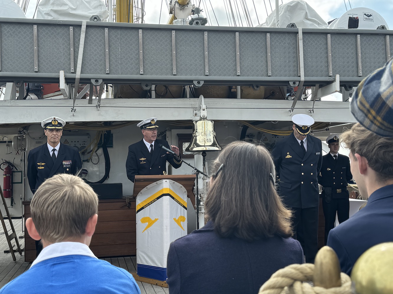 Der neue Kommandant, FKpt Bornkessel, bedankte sich bei seinem Vorgänger und richtete den Blick dann in die Zukunft: Ein Jahr bleibe ihnen, sich u.a. mit einer Fahrt in den tendenziell eher unangenehmen Norden (mit schlechterem Wetter und schwererer See) auf die erste Atlantiküberquerung seit 2011 vorzubereiten. Ziel werde die Ostküste der USA sein. Am 4. Juli 2026 möchte der neue Kommandant mit der Gorch Fock anlässlich des 250. Jahrestages der Unabhängigkeitserklärung der Vereinigten Staaten in New York einlaufen. Zunächst aber stehen die Tall Ships Races 2024 Anfang August in Stettin auf dem Programm sowie direkt im Anschluss die 33. Hanse Sail in Rostock/Warnemünde. Danach müsse ein kurzer „TÜV“-Aufenthalt in der Lürssen-Werft in Hamburg absolviert werden, der, so unterstrich FKpt Bornkessel, hoffentlich fristgerecht durchgeführt werde, um die anspruchsvollen Pläne nicht zu durchkreuzen.