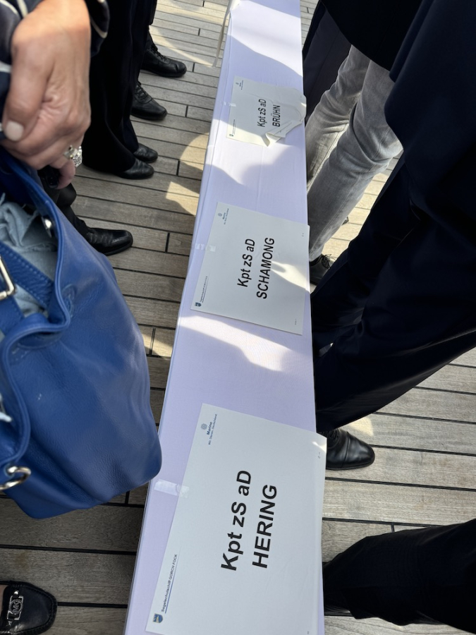Ein herzlicher Dank geht noch einmal an den unermüdlich hinter den Kulissen wirkenden OStBtsm Steffen Kreidl sowie an den nunmehr ehemaligen Kommandanten, Kpt zS Graf von Kielmansegg, und seinen Nachfolger, FKpt Bornkessel, denen wir an dieser Stelle noch einmal ganz herzlich für die Einladung danken und das Allerbeste wünschen: „Fair winds and following seas!“