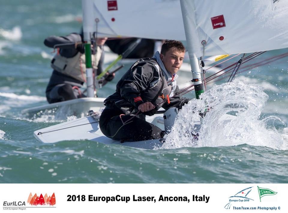 Albert hat bei der ersten Regatta der Laser Radial über Ostern in Italien ein tolles Ergebnis erzielt. Hier sein Bericht von heute morgen: "Nach zwei sehr wechselhaften Tagen (erst zu viel Wind, in der abgebrochenen 1. Wettfahrt Platz 4, dann Flaute) mit nur einer ins Ziel gefahrenen (Schweine-)Wettfahrt, ging der Europacup mit frischem, fairen Wind am dritten Tag erst so richtig los. In den Gruppenrennen konnte ich durch konstante Rennergebnisse mit Platz 33 die Pole Position für eine Aufholjagd in der Goldgruppe sichern. Kein Druck und keine Aufmerksamkeit durch eine Platzierung gleich hinter den Besten und trotzdem nur wenige Punkte Unterschied nach vorne machten es deutlich leichter, ohne Aufregung an den Start gehen zu können. Diese tollen Ausgangsbedingungen wurden jedoch vorerst durch maue Windbedingungen am Morgen lahmgelegt und es galt trotz der vielen neuen Kontakte und Menschen während der Startverschiebung an Land die Konzentration zu bewahren. Als guter Wind kam, fiel es mir dann anscheinend ein wenig leichter, in den Rennmodus zu kommen, als den anderen. In den Finalrennen in der Goldgruppe segelte ich zwei hochgradig spannende Rennen mit den Plätzen 8 und 11 ins Ziel. Während dieser Rennen erlebte ich endlich wieder den heißgeliebten Nervenkitzel, der mir den langen Winter über so gefehlt hat. Als erster Deutscher mit einer Abschlussplatzierung als 14. und einem 3. Platz in meiner Altersklasse von insgesamt über 100 Startern aus ganz Europa war der Europacup sowohl gefühls- und motivationsmäßig als auch im Hinblick auf die Ergebnisse ein äußerst erfolgreicher Start in die hoffentlich ebenso erfolgreiche kommende Saison."