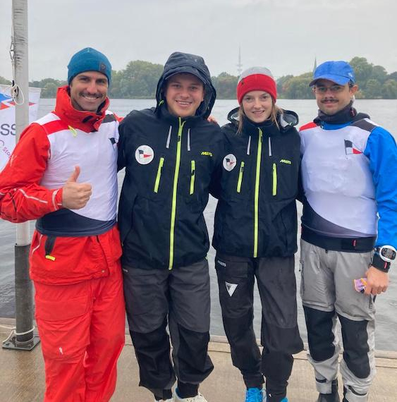 Für den PYC waren Bernardo Low-Beer, Line Wolters, Albert Paschen und Alessandro Santuz am Start. Trotz des böigen, stark drehenden Windes am Donnerstag konnten die vier einen sehr guten Bootsspeed hinlegen, hatten aber das ein oder andere Mal Pech, so dass sie den Tag etwas „geknickt“ beendeten. Am Freitag hatte das physisch sehr leichtgewichtige Team dann besonders zu kämpfen, aber, so Albert: „Auch wenn’s heute mit bis zu 30 kn richtig scheppert, segeln wir trotz einem der niedrigsten Crewgewichte des Events gut vorne mit.“ Nachmittags gegen 16 Uhr wurden die Wettfahrten für den (Sturm-)Tag beendet. Am Samstag hieß es dann noch einmal anzugreifen. Mit einem 1. und drei 3. Plätzen am letzten Tag beendete das Team die DSBL-Saison mit einer soliden Leistung und landete insgesamt in Hamburg auf dem 11. Platz.