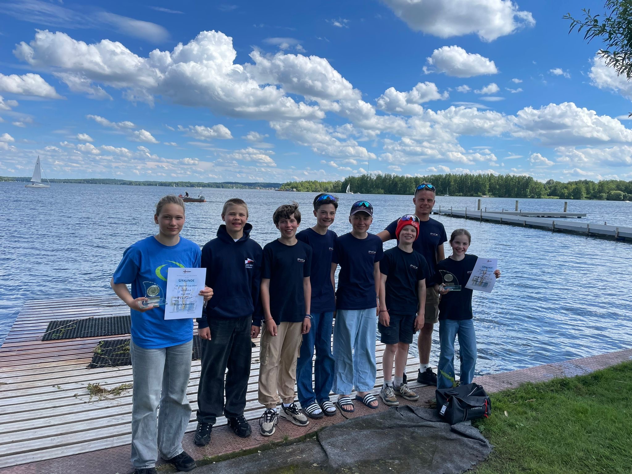 Vom 13. bis zum 14. Juli 2024 fand in Schwerin der Marstall Cup statt. Am ersten Segeltag (Samstag) sind wir 4 Rennen gefahren, weil die Bedingungen hervorragend waren. Am zweiten Regattatag war die Bedingungen auch sehr gut und wir konnte die geplanten 2 Rennen segeln. Deswegen waren wir schon um 14:00 Uhr wieder im Hafen und so konnten wir noch in Ruhe verladen. Der PYC war mit insgesamt 7 SeglerInnen vor Ort, beste PYC Seglerin war Hannah Jentsch auf Platz 26 und sie  hat damit ebenso in der Jüngstenwertung U12 den 2. Platz gewonnen.