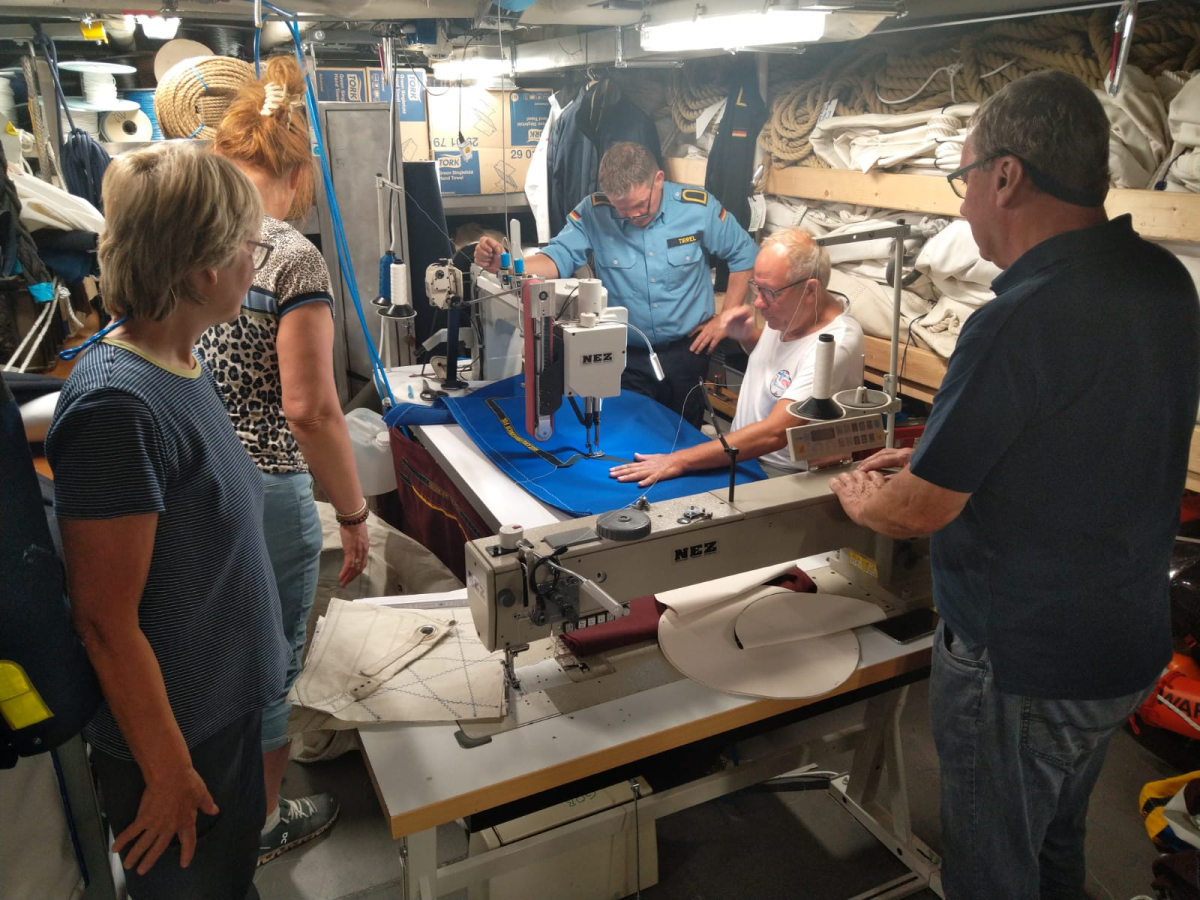 Die Älteren haben unter professioneller Anleitung des Segelmachermeisters gemeinschaftlich einen Seesack angefertigt. Dieser und zwei weitere Überraschungen werden beim Hafenfest am 20.09.2024 amerikanisch versteigert.