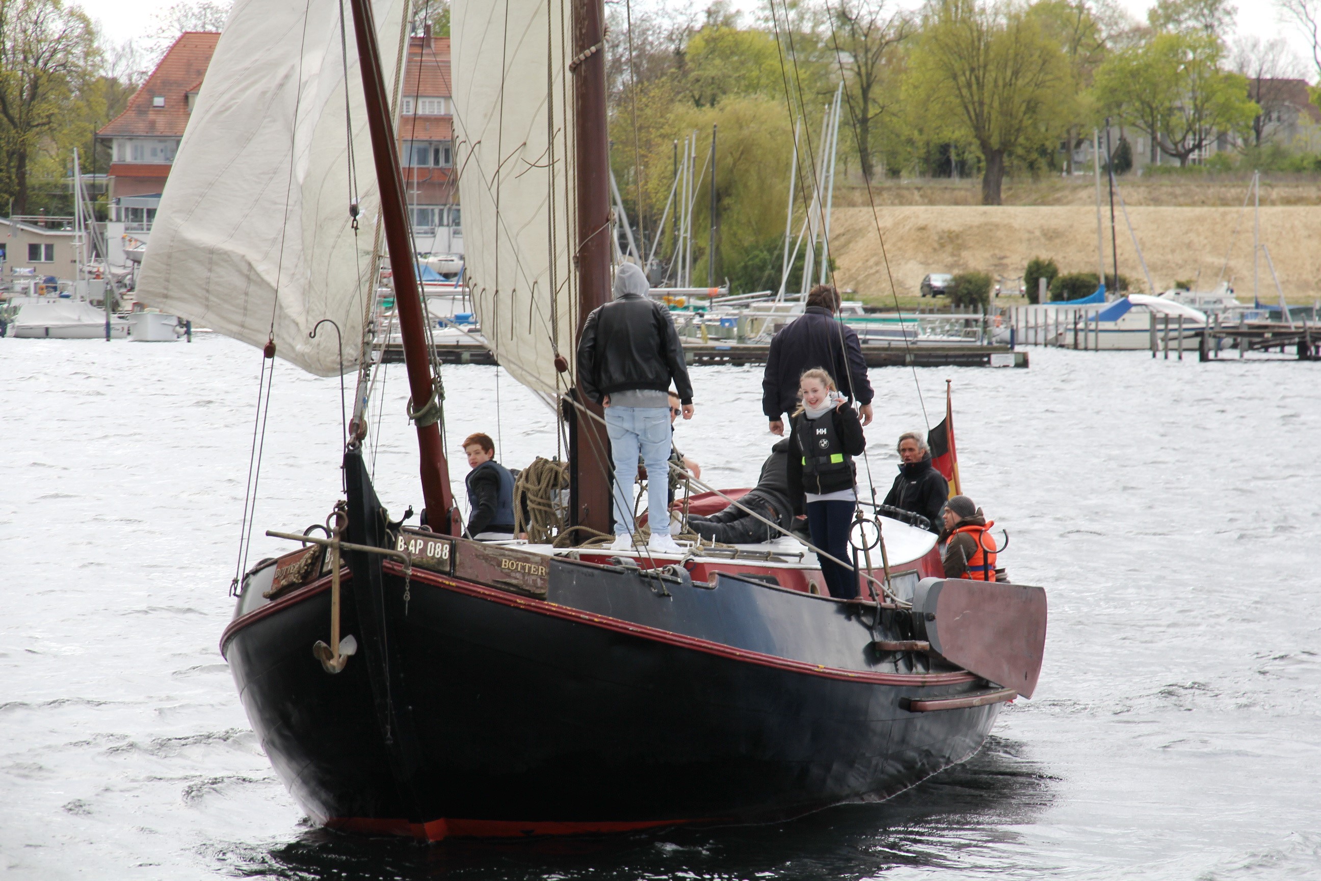 Noch vor dem offiziellen Ansegeln ermöglichte der PYC den Talents (Schüler) der NewSchool, einen spannenden und lehrreichen Tag auf dem Wannsee. Gleich zu Beginn gab es im Jugendhaus des PYC erstmal eine Einweisung, wie es für alle jungen Segler üblich ist. Thomas Läufer, einer der Segeltrainer, erklärte die Regeln und auch die Fachterminologie an Bord: Luv und Lee, Back- und Steuerbord, Heck und Bug wie auch die verschiedenen Taue und die wichtigsten Teile des Segelschiffes. Ralf Girrbach, Skipper und Schiffseigner, verteilte die Aufgaben an Bord und wies auf die wichtige Rolle des Teamworks im Segelsport hin.  Alle Talents der NewSchool waren mit viel Begeisterung und Elan dabei, als sie das piratenähnliche Segelschiff „entern“ durften. Dem konnte auch das Aprilwetter keinen Abbruch tun. Bei starkem Wind, Hagel und Regen durften die Talents sich mit den Kräften der Natur anfreunden und auseinandersetzen. Aber wie Aristoteles schon sagte: “Wir können den Wind nicht ändern, aber die Segel anders setzen“. Frei nach diesem Motto wurden die Leinen angezogen und die Segel neu gesetzt. In einer vorbildlichen Schräglage segelte die Crew weiter über den Wannsee.  Die Mentoren beobachteten das Geschehen im Trockenen, vom Schiff des Hafenkapitäns aus. Super happy und mit großer Vorfreude auf mehr, verließen die Talents den Potsdamer Yacht Club. Herzlichen Dank an Thomas Läufer und Ralf Girrbach!