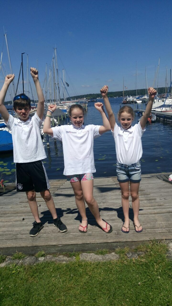 Dreifacherfolg bei der Berliner Meisterschaft der Opti B beim SC Gothia! Knackiger Wind am Samstag mit drei Wettfahrten verlangten den jungen Seglerinnen und Seglern am ersten Tag der Berliner Meisterschaft nicht nur seglerisches Können, sondern auch jede Menge Kondition ab. Wohl dem, der eine volle Fresstonne mitgebracht hatte. Viele der knapp 100 Teilnehmer traten bei den Bedingungen erst gar nicht an, einige kenterten so häufig, dass sie keine Kraft mehr hatten. Am Sonntag dann das Kontrastprogramm. Die Wettfahrtleitung hatte noch ein Rennen auf dem Plan. Nach einer Wettfart mit ganz wenig Wind war am Ende der Dreifacherfolg der PYC Segler perfekt. Annabelle Knoop ist Berliner Meisterin (und ließ sich auch nicht von einem ungeplanten Bad Ihres Vaters beim Ablegen irritieren), Samuel Tolckmitt und Leonie Böcker belegten die Plätze 2 und 3. Paul Kühling platzierte sich als achter noch unter den Top 10. Ein toller Erfolg der Truppe von Thomas Läufer und Lulu Schumann. Herzlichen Glückwunsch! Insgesamt ein beeindruckendes Abschneiden der gesamten Opti B Mannschaft des PYC. Alle angetretenen 16 Seglerinnen und Segler hielten bei den Bedingungen mit bemerkenswerten Ergebnissen durch.