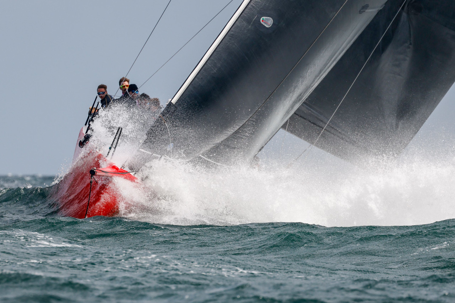 … fasste Tatjana Pokorny die ersten drei Wettfahrttage der ORC-WM in der Yacht zusammen. (Yacht, 09.08.2023) Gleich der erste Tag, Montag, 7. August, startete stürmisch –  mit Böen von einer Stärke bis zu 40 kn. Statt der ursprünglich geplanten Langstrecke ließ die Wettfahrtleitung des veranstaltenden Kieler Yacht-Club zunächst einmal eine Kurzstrecke unter Küstenabdeckung segeln. Der starke Westwind, der in die Kieler Bucht einfiel, hatte niedrigere Pegelstände im Westen zur Folge, so dass die größeren Boote der Klasse ORC A den Hafen in Kiel-Schilksee am Dienstag nicht ohne mögliche Grundberührung hätten verlassen können. Keine Wettfahrten also für Frederick Eichhorst, der wieder als Crewmitglied von Carl-Peter Forster (Bay.YC) an Bord der Red Bandit dabei war. In den Regen – und z.T. auch Gewitter – bei Windstärken von 20 bis 30 kn starteten dagegen die Klassen ORC B und C. Mit dabei in der Klasse C: Magnus Masilge, wie immer an Bord der IMMAC FRAM mit Kai Mares (KYC) am Steuer.