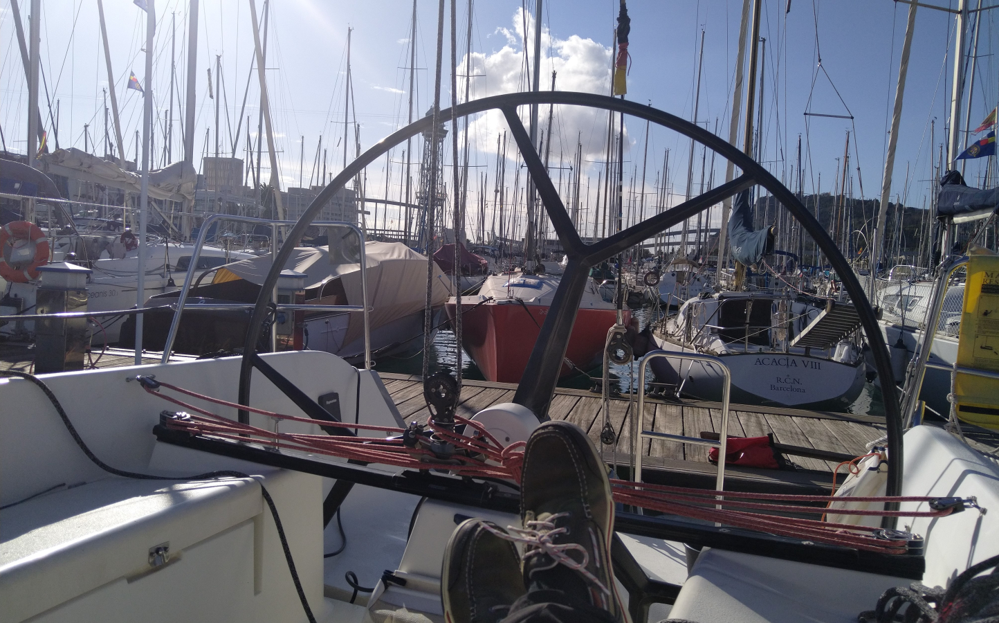 Das dritte Adventswochenende bildete den Abschluss der ORC- Regattaserie und Jürgen Waldheim mit seiner IMX 40 "Pinguino Rosa" als Steuermann und Eigner, sowie Rocky Schmidt und ich, sowie weiteren Crewmitgliedern waren mit dabei (Uli Hennig war leider verhindert). Gesegelt wurden Up & Downs vor der tollen Kulisse von Barcelona, genau dort, wo der Amerikas Cup im Sommer ausgetragen worden war.