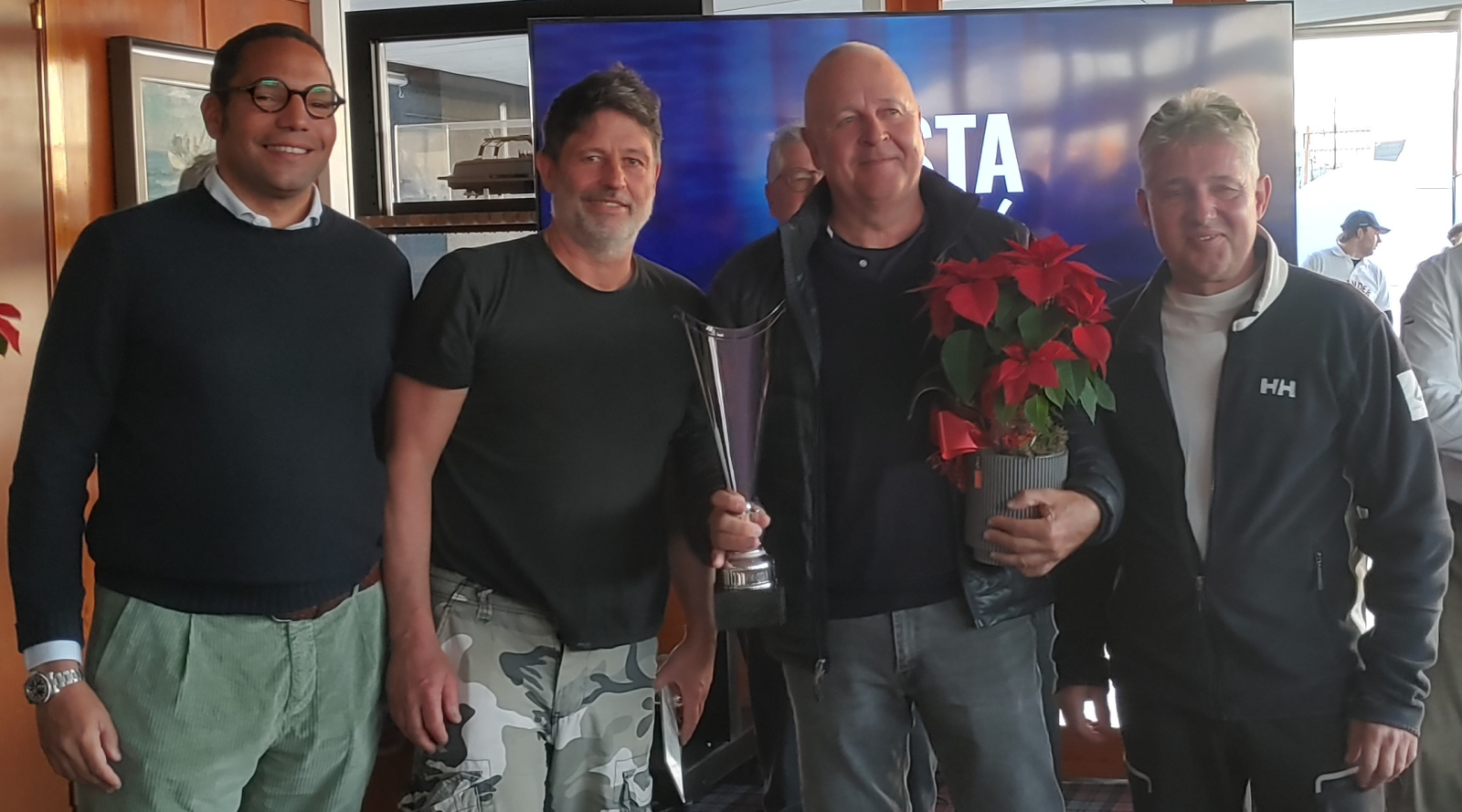 Bei sehr viel Sonnenschein, leichten Winden und bis zu 14 Grad, waren alle begeistert dabei. Obwohl Jürgens IMX 40 zu den kleineren Booten zählte, ersegelten wir 6ten Platz von 18 gestarteten Booten. Am Start waren u. a. eine TP 52 und eine Swan 50 CWS mit bis zu 14 Crewmitgliedern. Auch konnte Jürgen mit seinem Team den 2. Platz von 80 Booten, die an der Regattaserie 2024 teilgenommen haben, ersegeln und wurde dafür mit einem tollen Pokal geehrt.