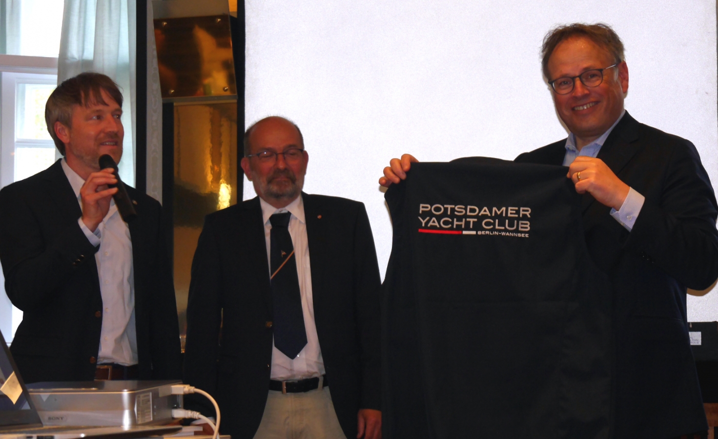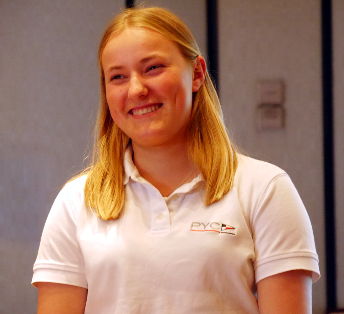 Bevor er sich endgültig aus der Verantwortung als Jugendobmann verabschiedete, bedankte sich Hartmut Papenthin noch einmal bei den Trainerinnen und Trainern der vergangenen beiden Jahre. Neben dem einzigen derzeitigen hauptamtlichen Trainer, Mark Bayer, konnte er auch Katharina Steinmüller (ehem. Opti C, Opti B), ihren Cousin Johannes Steinmüller (Opti B), Annika Bochmann (420er) und Daniel Zepuntke (ehem. 420er) sowie unseren FSJler, Paco Melzer (420er, Opti, alles was segelt), an diesem Abend unter den Gästen begrüßen. Danach war es Zeit für den Vorsitzenden, Benedikt Heüveldop, sich seinerseits beim jüngst aus dem Vorstandsteam ausgeschiedenen Jugendobmann zu bedanken und ihm nicht nur für die vergangenen drei Jahre, sondern auch für dessen Tätigkeiten, darunter auch die Übernahme des Postens des Zweiten Vorsitzenden, in den beiden vorhergehenden Legislaturperioden zu bedanken. Sein Nachfolger, Julius Adomeit, überreichte ihm im Namen des Clubs zum Dank eine Softshellweste mit PYC-Branding – einen Prototypen, der in dieser oder ähnlicher Form zeitnah in Serie gehen soll.