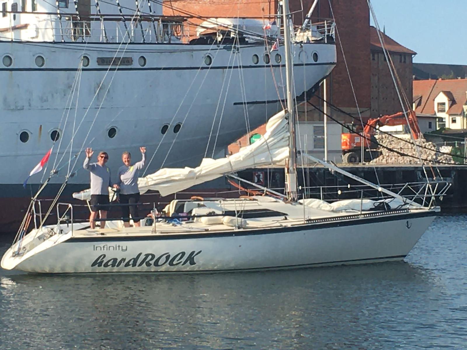 Nach 19 Stunden und 13 Minuten waren wir als 2. in unserer Yardstickgruppe im Ziel – k. o. und glücklich. Nach Berechnung behielten wir unseren 2. Platz, den wir mit der Gorch Fock I, der Vorgängerin des aktuellen Segelschulschiffs, im Hintergrund bei der Siegerehrung feiern konnten.
