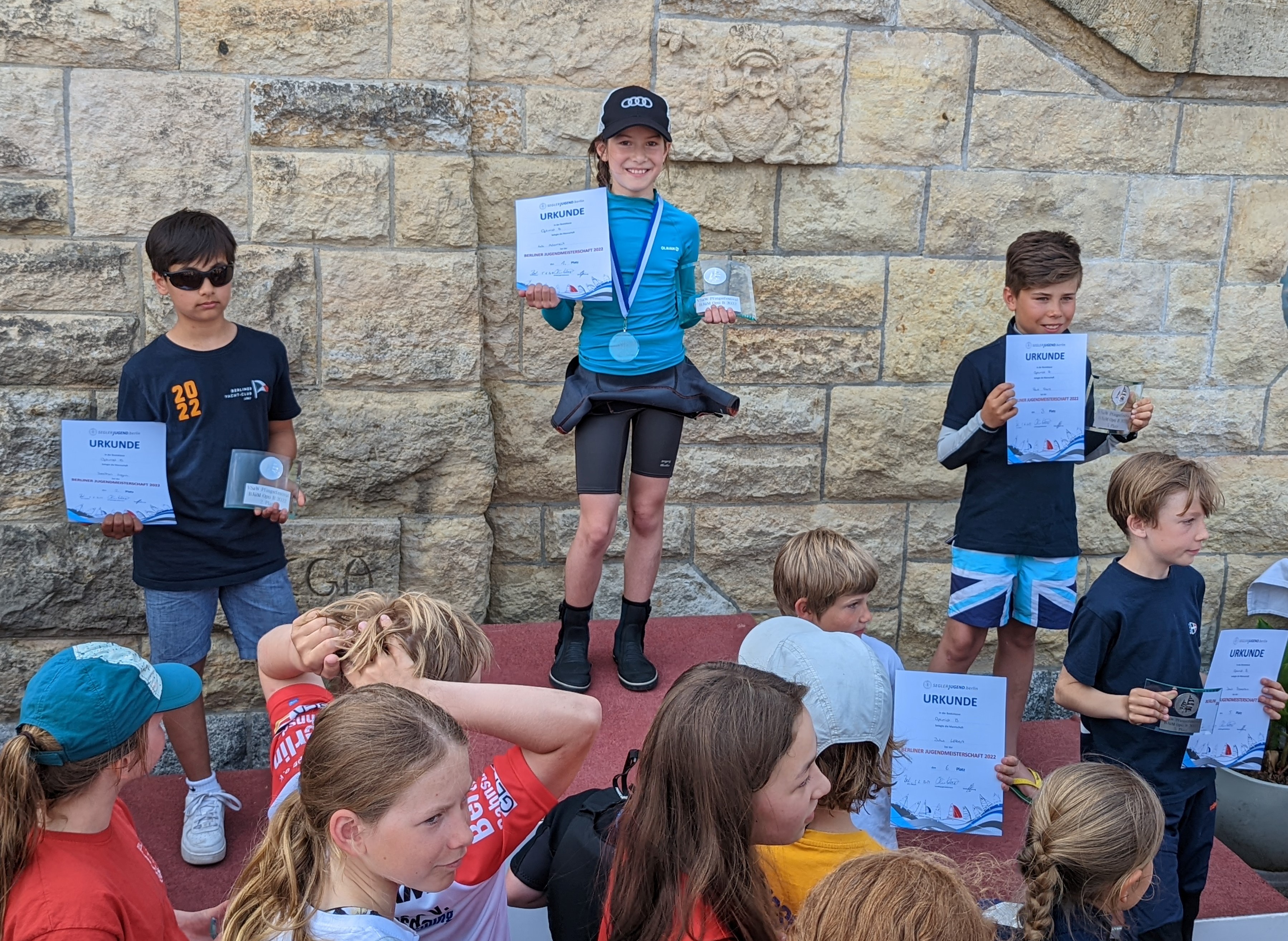 Bei schönem Sommerwetter startete am Pfingstwochenende die Berliner Jüngstenmeisterschaft mit 120 gemeldeten Opti B beim VSaW am Wannsee. Aufgrund der vielen SeglerInnen wurde in zwei Gruppen gestartet. Mit gutem Wind konnten am Samstag 3 Wettfahrten gesegelt werden. Lale Adomeit zeigte ihr Können mit den Plätzen 1, 2 und 1 und übernahem die Zwischenführung der Meisterschaft. Viele Kinder des PYC konnten in einzelnen Wettfahrten persönliche Highlights in ihren Platzierungen zeigen, wie z.B. Philipp Jentsch mit einem 2. Platz und Hanna Jentsch mit einem 8. Platz. Der Sonntag brachte viel Sonnenschein, leider aber auch recht unbeständigen Wind, so dass die zwei gestarteten Wettfahrten jeweils nicht zu Ende gesegelt werden konnten. So blieb es bei dem Ergebnis von Samstag und wir gratulieren Lale zum Gewinn der Berliner Jüngstenmeisterschaft 2022.