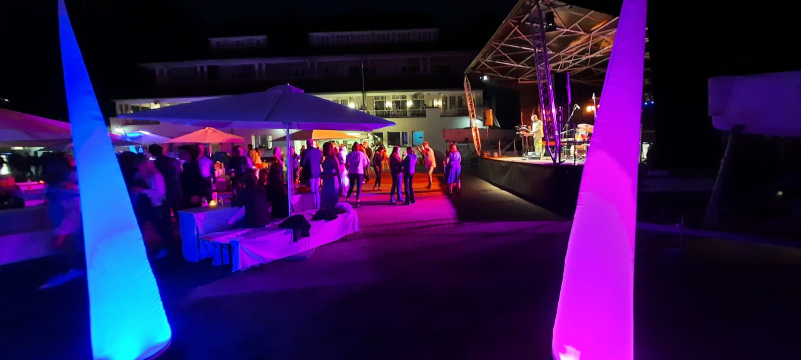 Der Tag begann mit einer Unwetterwarnung; sämtliche Wettervorhersagen sprachen gegen einen erfolgreichen, vergnüglichen Verlauf des diesjährigen Sommerfests am vergangenen Samstag, den 27. August. Leider ließen sich viele dadurch abschrecken. Schade, denn zum großen Glück der unverdrossen Feiernden behielten die Meteorologen weitgehend Unrecht. Es tröpfelte hie und da einmal, das war’s. Die Spezialitäten des Speckdealers, die Pierogi oder auch die Flammkuchenvariationen – nichts wurde von Petrus verwässert, Bier und ausgesuchte Weine konnten unverdünnt unter freiem Himmel genossen werden. Die Royal Louise hatte eigens am Weststeg festgemacht und lud zum Besuch ein. Iwona & The Crazy Vibes sorgten musikalisch für gute Laune und DJ Marco Zips bewies ein gutes Gespür dafür, wie man Gäste auf die Tanzfläche lockt und dort hält. – Ein herzlicher Dank gilt allen, die an der Planung und Ausrichtung beteiligt waren, vor allem Sven Banse, Thomas Rosin und Axel Bilowsky sowie auch Thies Federolf für ihren tatkräftigen Einsatz.