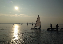 Der Stander des PYC wird auch im Winter gefahren... Die Riege der Eissegler genießt die Gastfreundschaft der Rangsdorfer Segelgemeinschaft 53 e.V. (RSG 53).