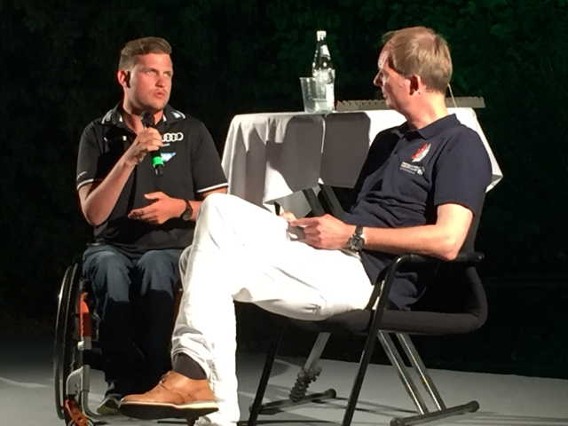 Am 19. August 2016 kamen an einem herrlichen Sommerabend mehr als 500 Gäste, Segler und Mitglieder im PYC zusammen, um nunmehr schon die dritte Summerlounge zu feiern. Nicht nur, dass der PYC gemeinsam mit dem VSaW an diesem Wochenende die Wettfahrten zum vierten Bundesligaevent ausrichtet, ist es vielmehr die entspannte Atmosphäre, in der das Motto sinnbildlich Programm war: "Chillen in den Sonnenuntergang". Begrüßt wurden alle Gäste von den beiden Sportvorständen Ulrike Schümann (VSaW) und Jürgen Waldheim. Moderiert von Nicolai des Coudres gab es in kurzen Interviewrunden mit Ulrike Schümann (VSaW), Frank Thieme, Thomas Läufer, Jens Kuphal (BYC) sowie Jocky Hellmich (Konzeptwerft) interessantes zur Vorbereitung auf die olympischen Spiele früher und heute. Schließlich waren Ulrike und Frank in früheren Jahren selber Teilnehmer. Ulrike berichtete ferner von den beiden Damenteams, die unter der Flagge des VSaW letzte Woche in Rio um Medaillen kämpfen durften. Thomas, Jens und Jocky spannnten den Bogen von der Segelbundesliga zur Juniorenliga hin zur Ausbildung des Segelnachwuchses, bei denen die drei Nachbarvereine am Wannsee sehr gut unterwegs sind. Der sportliche Leiter des Profi Basketballteams von Alba Berlin, Himar Ojeda, schilderte schließlich die Vorbereitung auf die am 24.9. beginnende Bundesligasaison und die Herausforderungen, wieder ein gutes Team aufzubauen. Großzügig zeigte sich Alba und verloste spontan noch zwei Eintrittskarten für das erste Heimspiel. Die Alba Dancers sorgten mit mehreren Einlagen für ein Stimmungsfeuerwerk. Nicht nur emotionaler Höhepunkt war allerdings die Verabschiedung von Lasse Klötzing. Lasse wird bei den Paralympics in Rio der Steuermann des deutschen Sonar Teams sein. Vom Vorsitzenden des PYC, Hartmut Waldow, nahm er hierfür die besten Wünsche entgegen. Weltspitze in der 2.4mR Klasse wird er nun im Sonar sein bestes geben, um das Team im leicht größeren Kielboot erfolgreich zu machen. Lasse wurde unter lang anhaltendem und vermutlich noch in Rio zu hörendem Applaus verabschiedet. Anschließend wurde der Dancefloor eröffnet und bis spät in die Nacht hinein getanzt, gefeiert und geklönt. Insgesamt eine prima Veranstaltung und ein voller Erfolg, der im kommenden Jahr bestimmt eine Wiederholung finden wird.