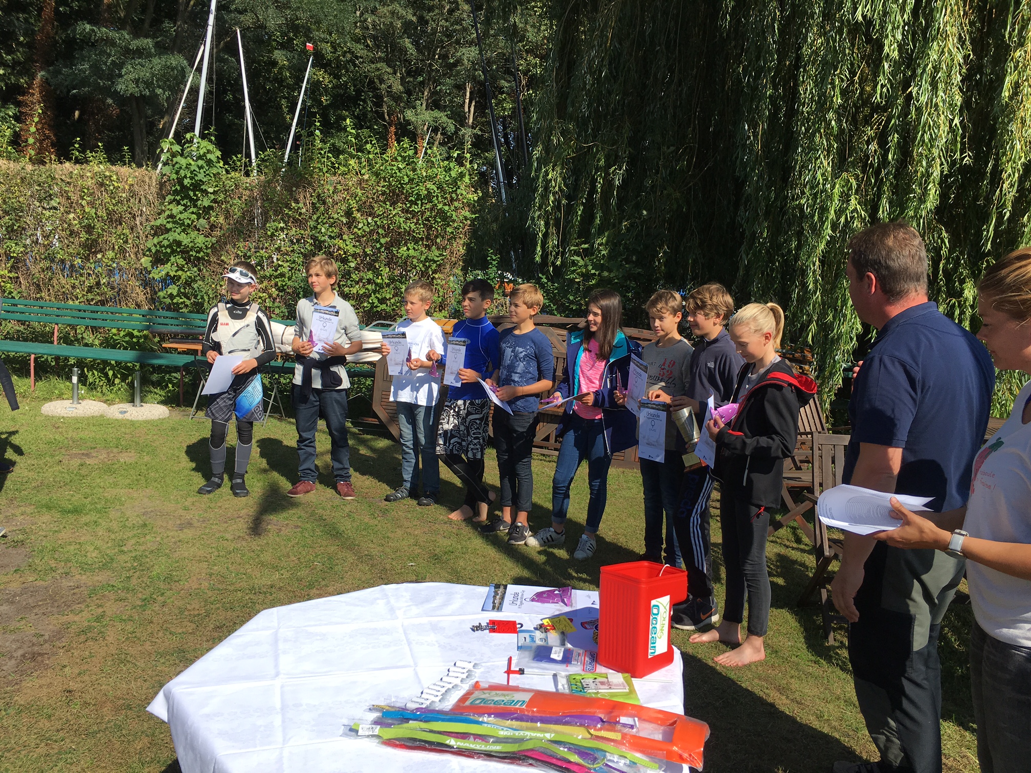 Was für ein Wochenende. Die PYC Jugend war in großer Anzahl bei verschiedenen Regatten am 16. und 17. September 2017 in und um Berlin herum unterwegs. Die Laser Radial und Laser 4.7. freuten sich auf die Berliner Jugendmeisterschaft, die als ein Kaderkriterium gilt. Trainer Moritz Paschen sorgte für den letzten Trimmfeinschliff bei Gesa, Maxi, Max, Victor, Theo, Albert und Hendrik. Am Samstag hat die Wettfahrtleitung bei drehenden Winden um die 4 Knoten verschiedene Startversuche gemacht, aber auf der großen Breite setzte sich kein konstanter Wind durch, der Wettfahrten unter regulären Bedingungen erlaubt hätte. So wurde der Tag ohne eine Wettfahrt um 14h beendet. Am folgenden Tag sah die Vorhersage nur umlaufende Winde um 1 Knoten voraus aber die Hoffung stirbt bekanntlich zuletzt. Startverschiebung an Land und chillen in der Sonne auf dem schönen Jollengelände war angesagt. Gut für die Erholung, doof zum Segeln. Die WF-leitung hatte ein Einsehen und so wurde gegen 12 die BJM ohne Titelträger beendet. Schade für die größte Berliner Laser 4.7 Truppe des PYC. Aber es kommen ja bis Ende Oktober noch ein paar Regatten zwischen Berlin und Warnemünde, bei denen Punkte und Erfahrungen gesammelt werden können. Nur 30 km entfernt gab es offensichtlich komplett andere Bedingungen. Die Opti A waren beim Müggelschlösschencup am Start. Drei Leichtwindrennen wurden am Samstag gefahren, damit die Pokale unter die SeglerInnen und der Kuchen an die Eltern gebracht werden konnten. Mit den schwierigen Bedingungen kamen die PYC Segler sehr gut zurecht. Merlin auf Platz 2, Phillipp auf Platz 5 und Kjell auf Platz 9 haben ordentlich Punkte für die WMA und IDJüM Quali gesammelt. Ruben bewies "um die Ecke" seine tolle Form bei den Opti B bei der Kehrausregatta an der Dahme und gewann diese. Leonie Böcker im neuen Boot kam auf Platz 4. So kann es gerne weitergehen.