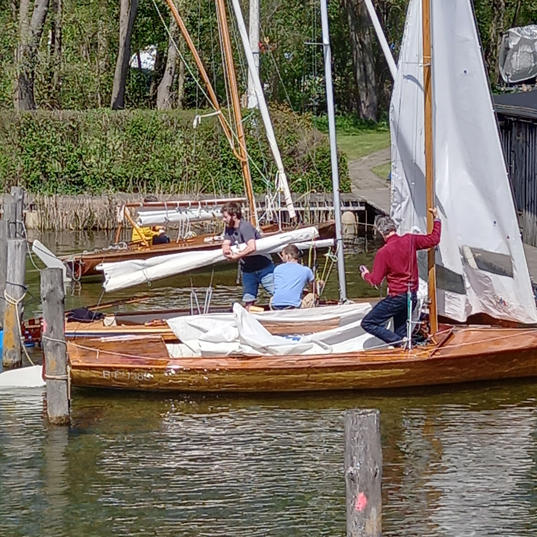 In den letzten beiden Jahren waren wir „nur“ Mitsegler auf den schönen Jollen auf der Schlei und dem Ratzeburger See. Da für dieses Jahr die Müritz als Zielgebiet vereinbart wurde, waren auch wir mit eigenem Schiff dabei. Etwas überstürzt, da ursprünglich ein Trailertransfer geplant war, haben wir uns am 3. Mai auf nach Spandau (dort lag noch unsere Persenning zur Reparatur) und die Havel aufwärts gemacht.