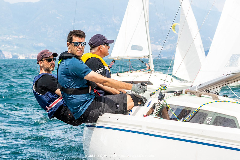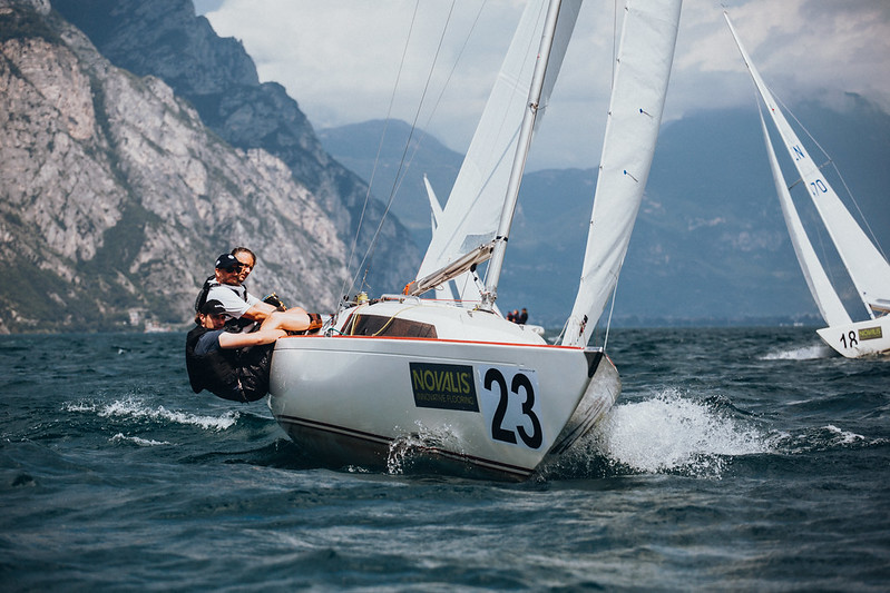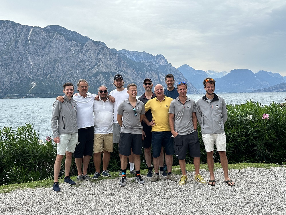 Dort ging dann beim Aufbau des Bootes und der Vermessung alles glatt und wir konnten in unsere erste H-Boot-WM starten. Zur Eröffnungsfeier wurden die Crews der 52 gemeldeten H-Boote aus Dänemark, Schweden, Finnland, Holland, der Schweiz, Österreich und Deutschland von einem kleinen Fanfarenzug und den Flaggen der teilnehmenden Nationen begleitet durch den Ort geführt. Danach begrüßten der Weltpräsident der H-Boot-Klassenvereinigung und der Vorstand des ausrichtenden Fraglia Vela Malcesine die Crews im überaus repräsentativen örtlichen Palast des Bürgermeisters.