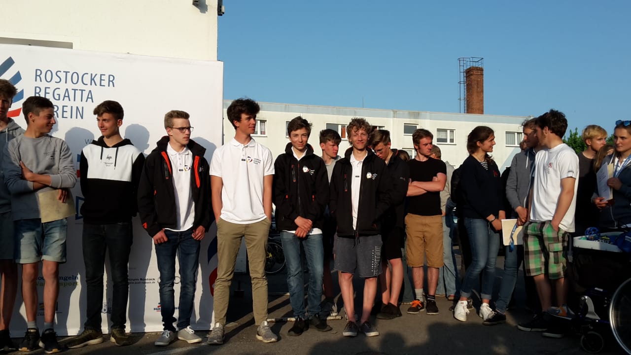 Am Dienstag nach der Schule sind wir vom LLZ aus nach Warnemünde gefahren, damit am Mittwoch die Boote vermessen werden konnten. Himmelfahrt war der erste Tag der Regatta. Es waren max. 10 Wettfahrten bis Samstag vorgesehen und der Sonntag sollte Ersatztag sein, falls bis Samstag nur acht Wettfahrten gesegelt werden konnten. Es gab Wind... allerdings nicht sehr viel. Am Donnerstag noch mit Windstärke 3-4 bft um die Tonnen gesegelt, musste Freitag bei 2 bft nach drei Wettfahrten aufgehört werden. Ein Glück waren es Samstag dann wieder 3-4 bft und so konnten die erforderlichen 10 Wettfahrten stattfinden. Folgende Ergebnisse haben wir dabei erzielt: 3, 16, 6, 11, 10, 19, (BFD), 5,15 und 13. Reichte das für unser Ziel unter die ersten 10 Plätze zu kommen? Noch viel wichtiger, reichte das auch für die Qualifikation zur JEM, oder waren andere doch schneller? Denn es gibt nur für 7 Teams Open/Damen und 3 Teams U17 Open/Damen Startplätze. Derzeit auf Platz 15 der Qualifikationsrangliste, wussten wir auch nicht genau, wer fährt nur zur WM und macht uns dadurch evtl. einen U17 Startplatz frei? Nun zur Erklärung der Qualifikation: