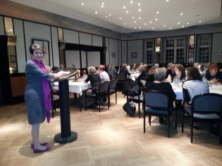 Vor gut gefülltem Saal berichtete uns Ute Gräfin von Hardenberg in ihrer Funktion als dessen Vorsitzende anschaulich und kurzweilig über die Gründung und Entwicklung des Vereins der Berliner Künstlerinnen 1867 e.V. bis hin zu aktuellen Preisverleihungen und stellte den Mitgliedern des PYC sogar für den Februar des nächsten Jahres eine Ausstellungsführung in Aussicht.