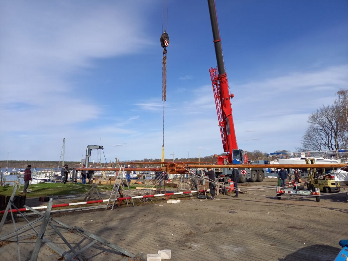Dass es so perfekt klappte, ist natürlich zuallererst unserem Bootsmann Sven Banse und seinen Helfern zu verdanken, die unermüdlich und konzentriert ans Werk gingen. Geholfen haben Vater Banse, René Schlieff, Axel Bilowsky, Jan Jeanneret-Grosjean, Anja Hanke, Martin Meyer, Thomas Rosin, unsere beiden Trainer Katharina und Mark, Rocky Schmidt und Sohn Erik, Hr. Tochtermann, Frau und Hr. Tunnat, Hr. Krause, Hr. Wallner, Hr. Römer, Hr. Raible, Hr. Karsch, Hr. Perschmann, Hr. Hunger und Hr. Großpietsch. Ihnen allen einen herzlichen Dank. Ganz verschweigen will ich nicht, das auch Petrus mit trockenem, windstillem und zeitweise sogar sonnigem Wetter sein Anteil am guten Gelingen hatte. Und nicht zuletzt gilt mein Dank unserem Gastrom Herrn Thamm, der die Kranmannschaft zum Mittag mit Chilli und Pasta köstlich versorgte. Vielen Dank für diese großzügige Unterstützung. Während die Eigner schon fleißig am Maststellen waren, gab es für die Clubmannschaft noch einmal zwei Tage harter Arbeit beim Aufräumen und Säubern des Platzes. Aber nun kann die Saison beginnen.