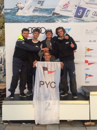 Der Aufstieg ist perfekt. Nach drei Jahren in der 2. Liga ist der PYC aufgestiegen. Freddie Eichhorst (17) an der Pinne, Moritz Paschen (17, Taktiker), Moritz Klingenberg als Oldie am Gennaker (24) und Leander Kamm (18) auf dem Vorschiff haben in der Relegation in Hamburg den zweiten Platz belegt, der zum Aufstieg in die erste Liga berechtigt. Was für ein toller Erfolg nach der Achterbahn der Ergebnisse in diesem Jahr. Wir gratulieren herzlich und werden das gebührend feiern! Damit nicht genug. Morgen kämpft das Team in leicht veränderter Zusammensetzung (Paul Pox statt Moritz Klingenberg) um den Sieg in der Juniorenbundesliga, die ebenfalls in Hamburg ihr Finale bestreitet. Hier die Ergebnisse der Relegation, die mit starken Team besetzt war.